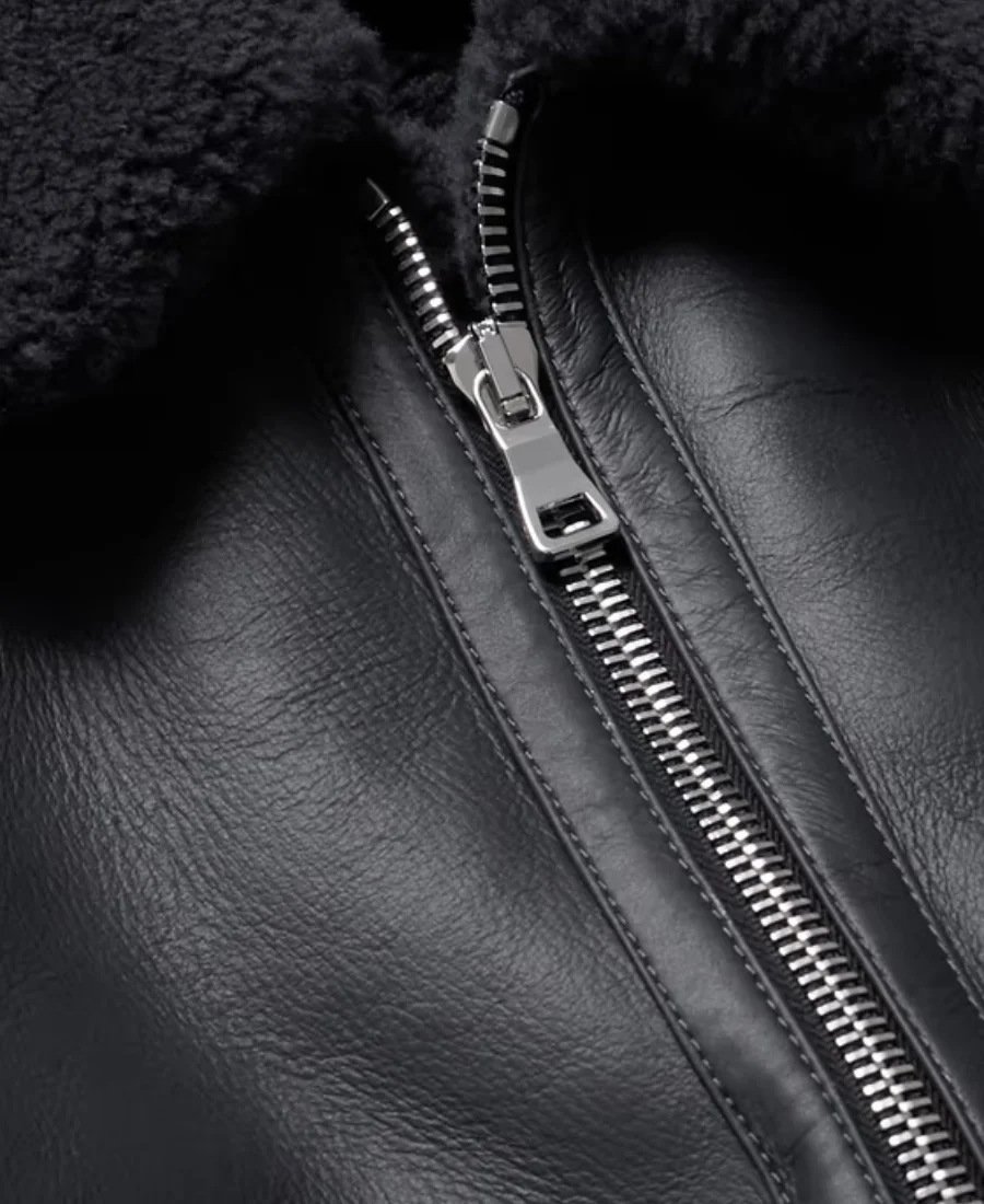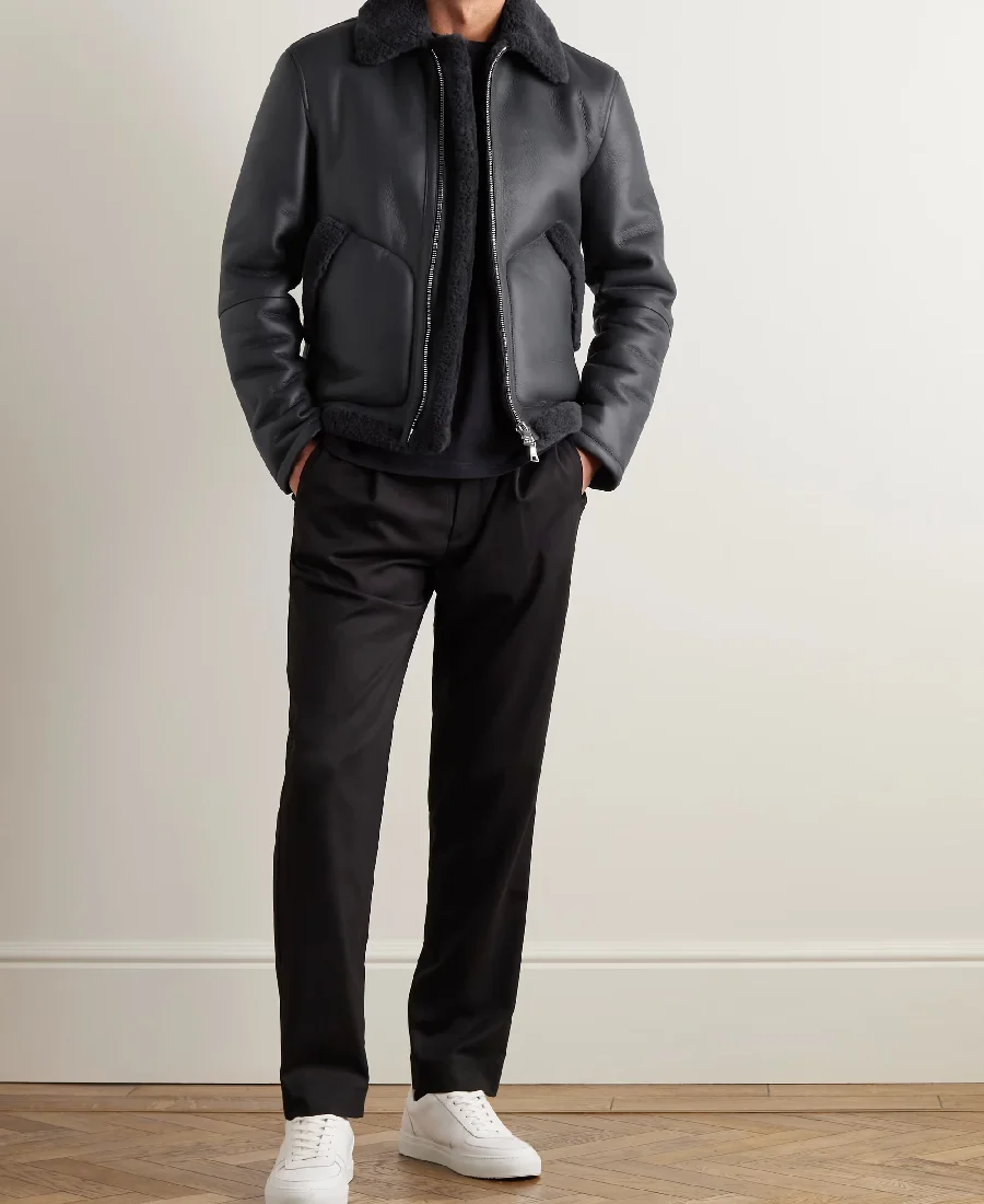 MR P Shearling Trucker Black Leather Jacket