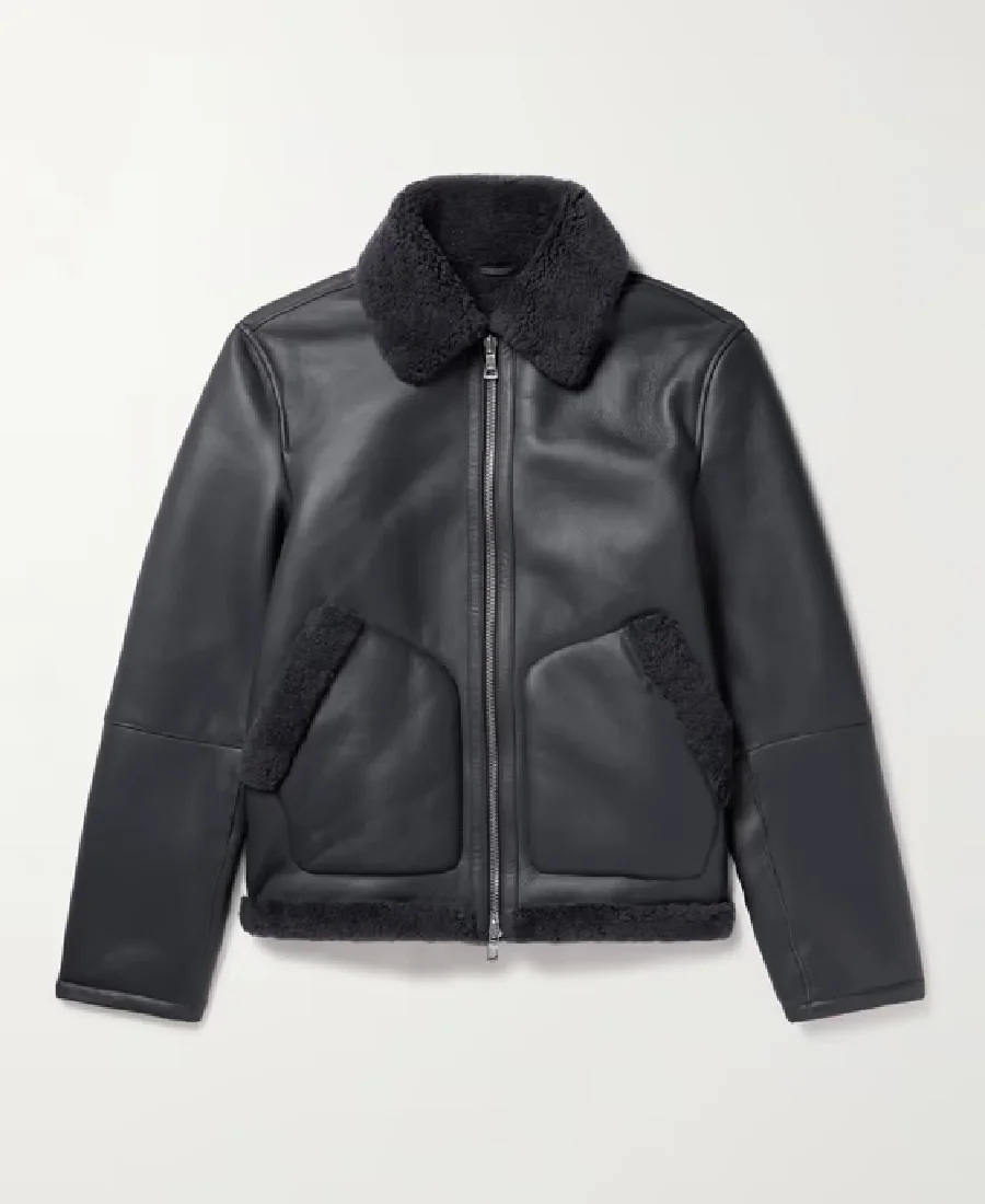 Shop The MR P Shearling Trucker Black Leather Jacket