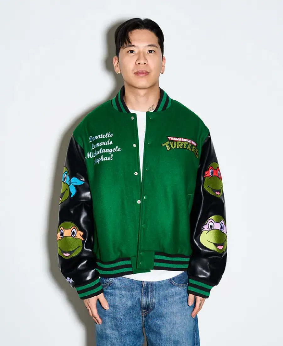 Crafted from high-quality materials, the jacket offers warmth, durability, and everyday comfort. The standout TMNT logos and character graphics bring the turtles to life, while the structured varsity silhouette keeps the look timeless and versatile. A smooth inner lining ensures comfortable wear, making it ideal for cooler days and layered outfits.