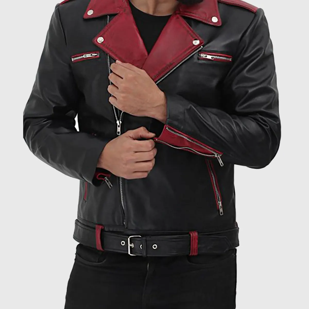 Nathan Men’s Black Biker Leather Jacket