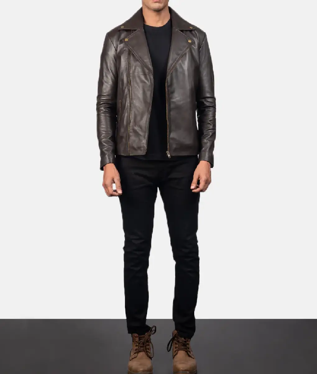 Noah Brown Leather Biker Jacket