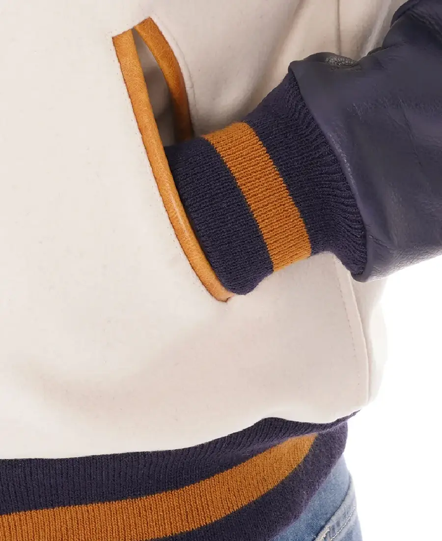 Off White And Purple Varsity Jacket
