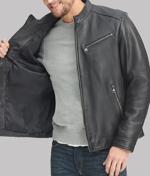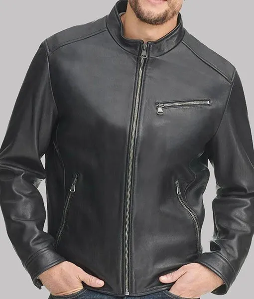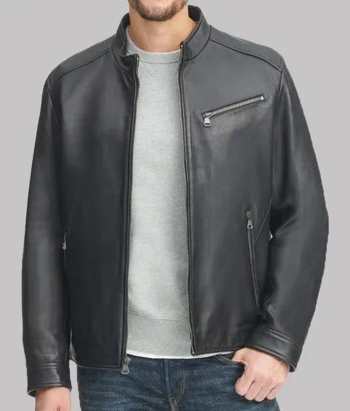 Owens Men’s Black Leather Stand-up Collar Biker Jacket