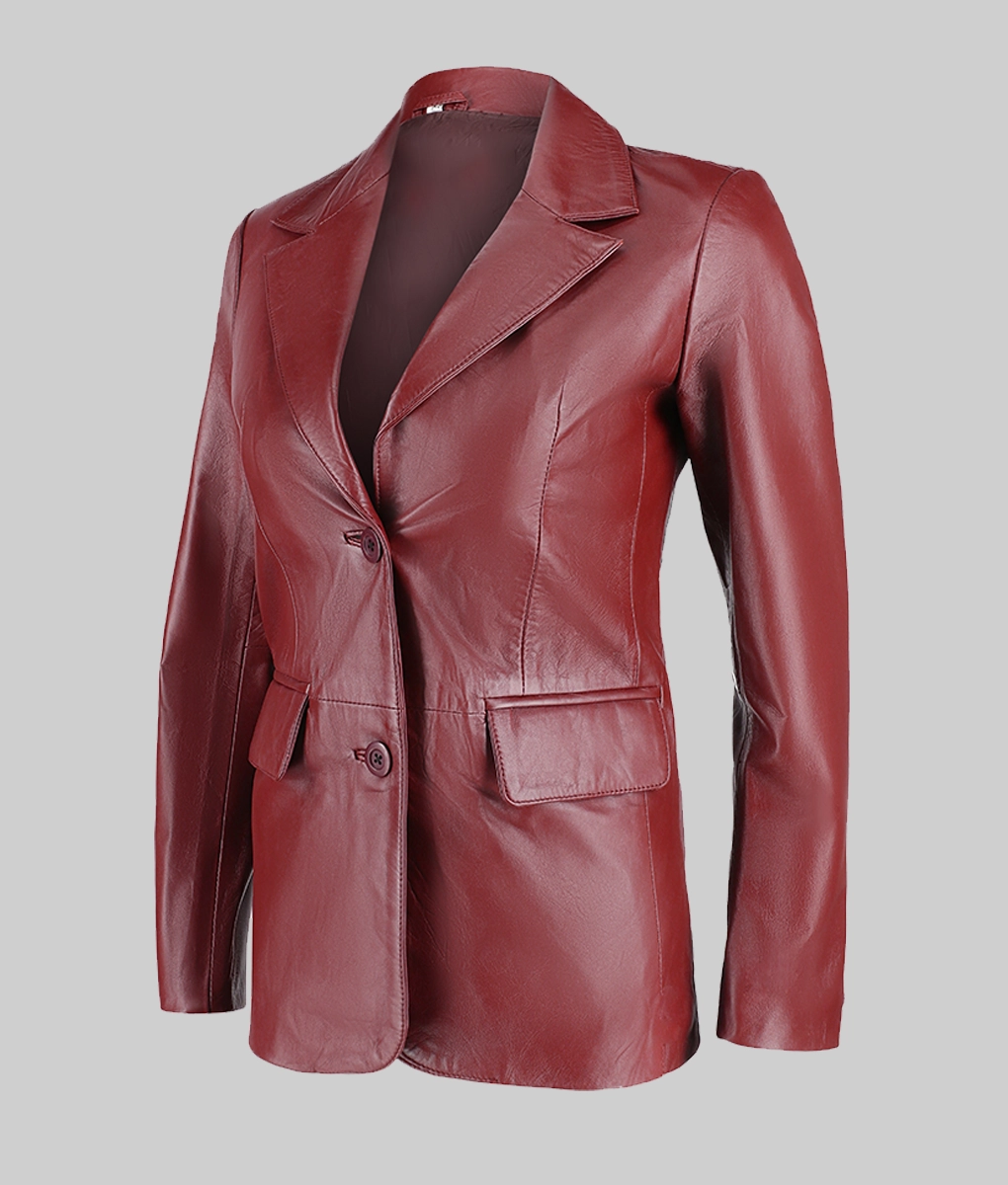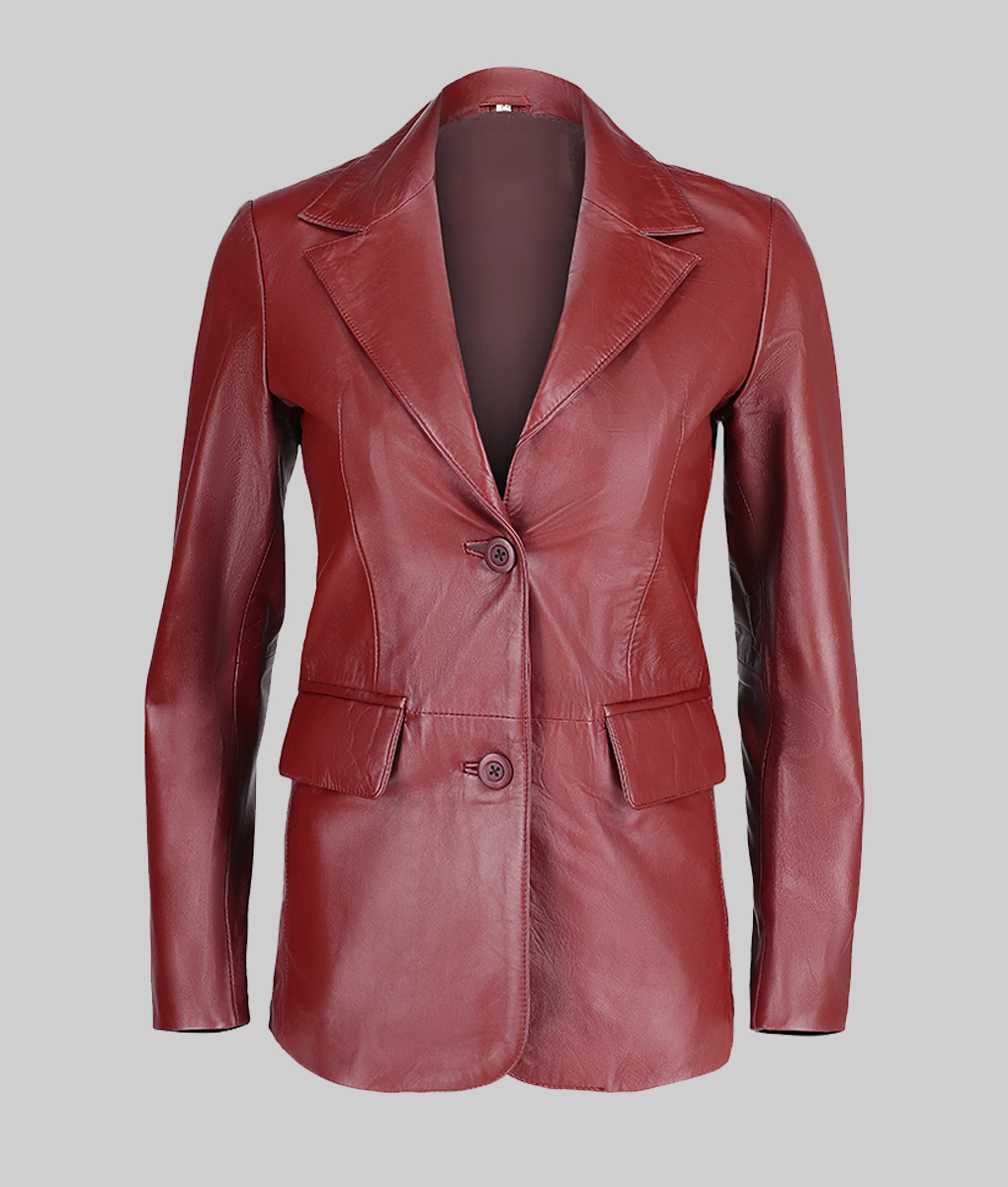 Be the first to review “Paula Slim Fit Maroon Leather Blazer for Women” Cancel reply