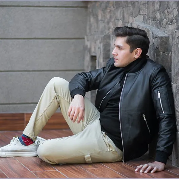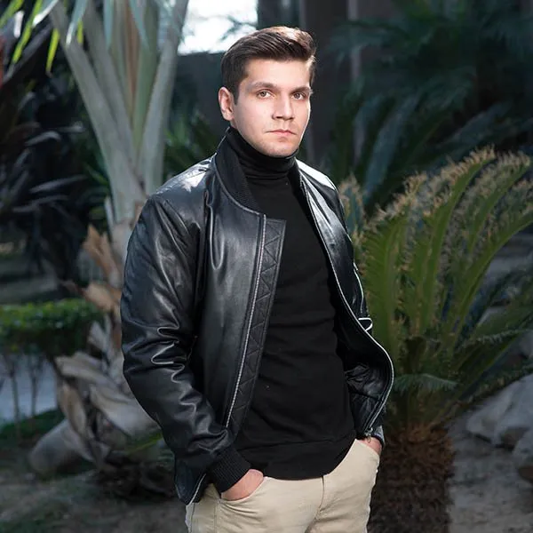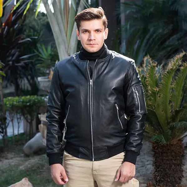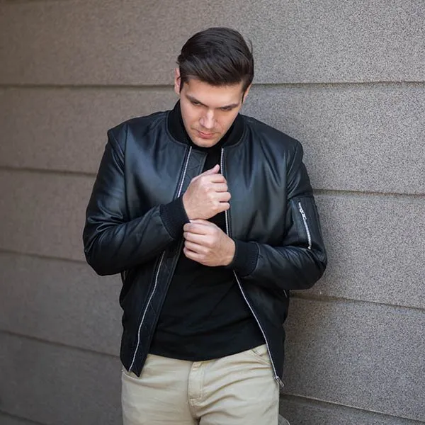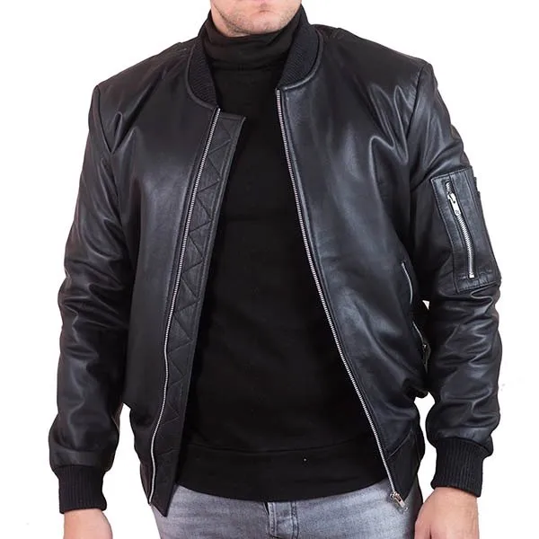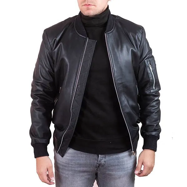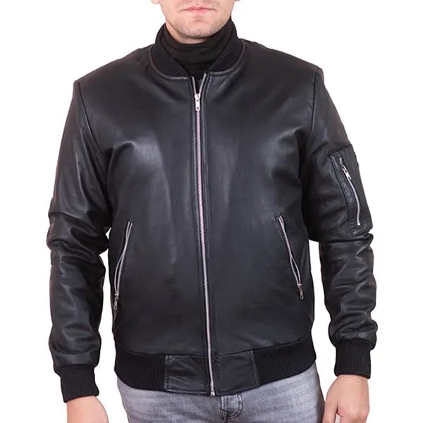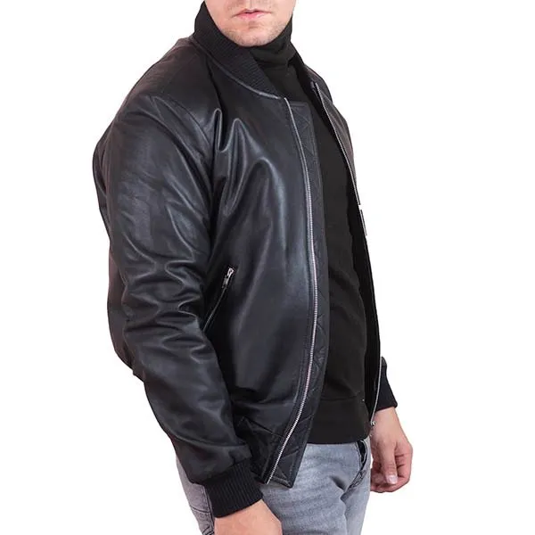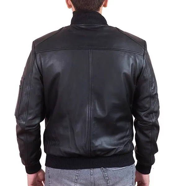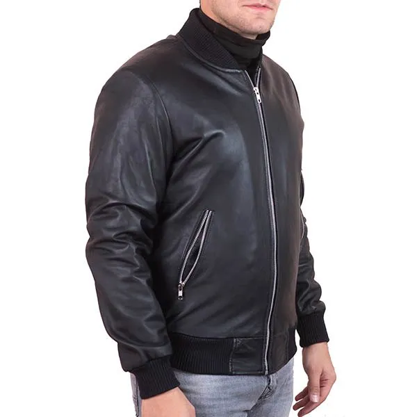 Shop ThePorter Men’s Black Leather Bomber Jacket