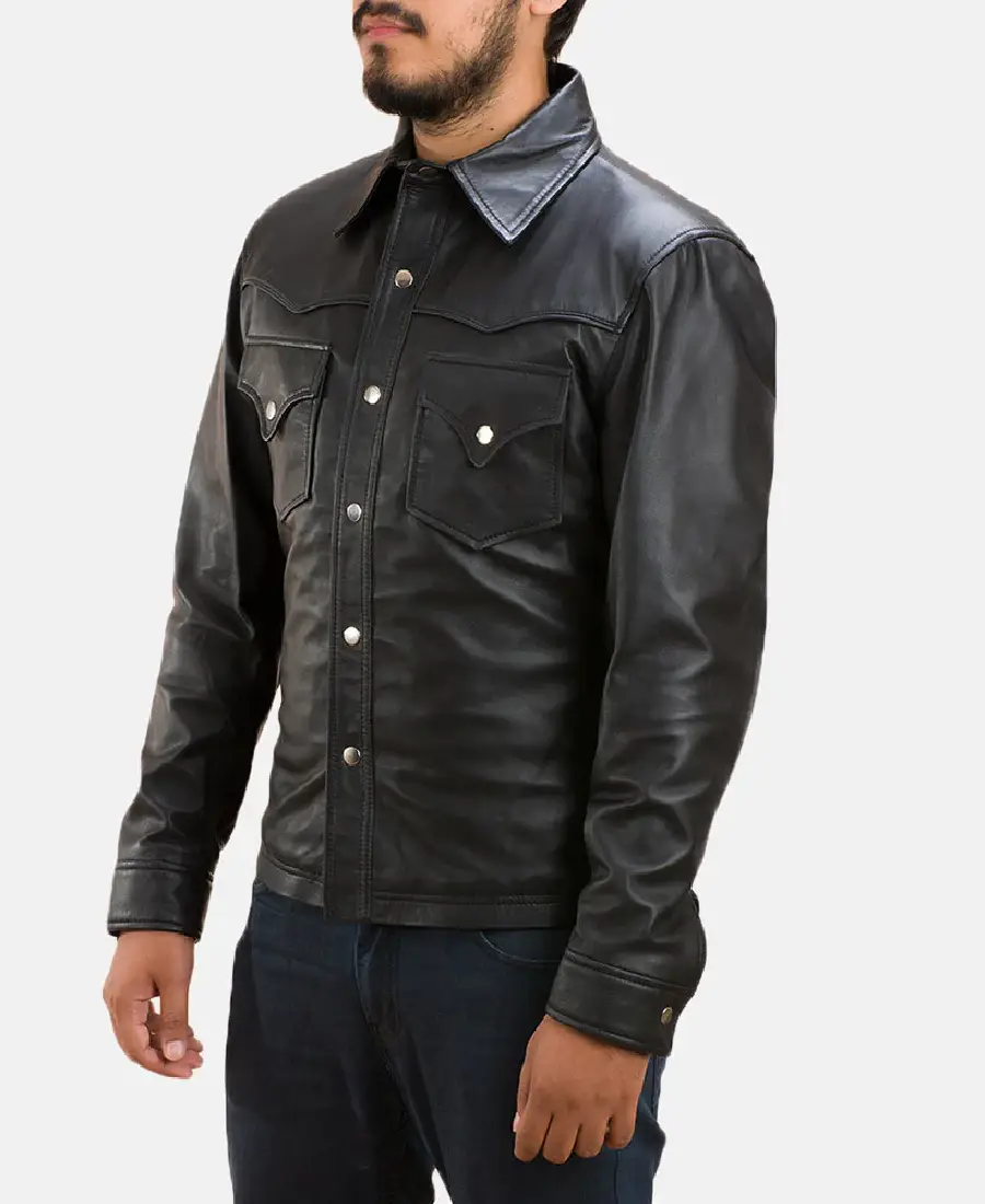Ranchson Black Leather Shirt Jacket