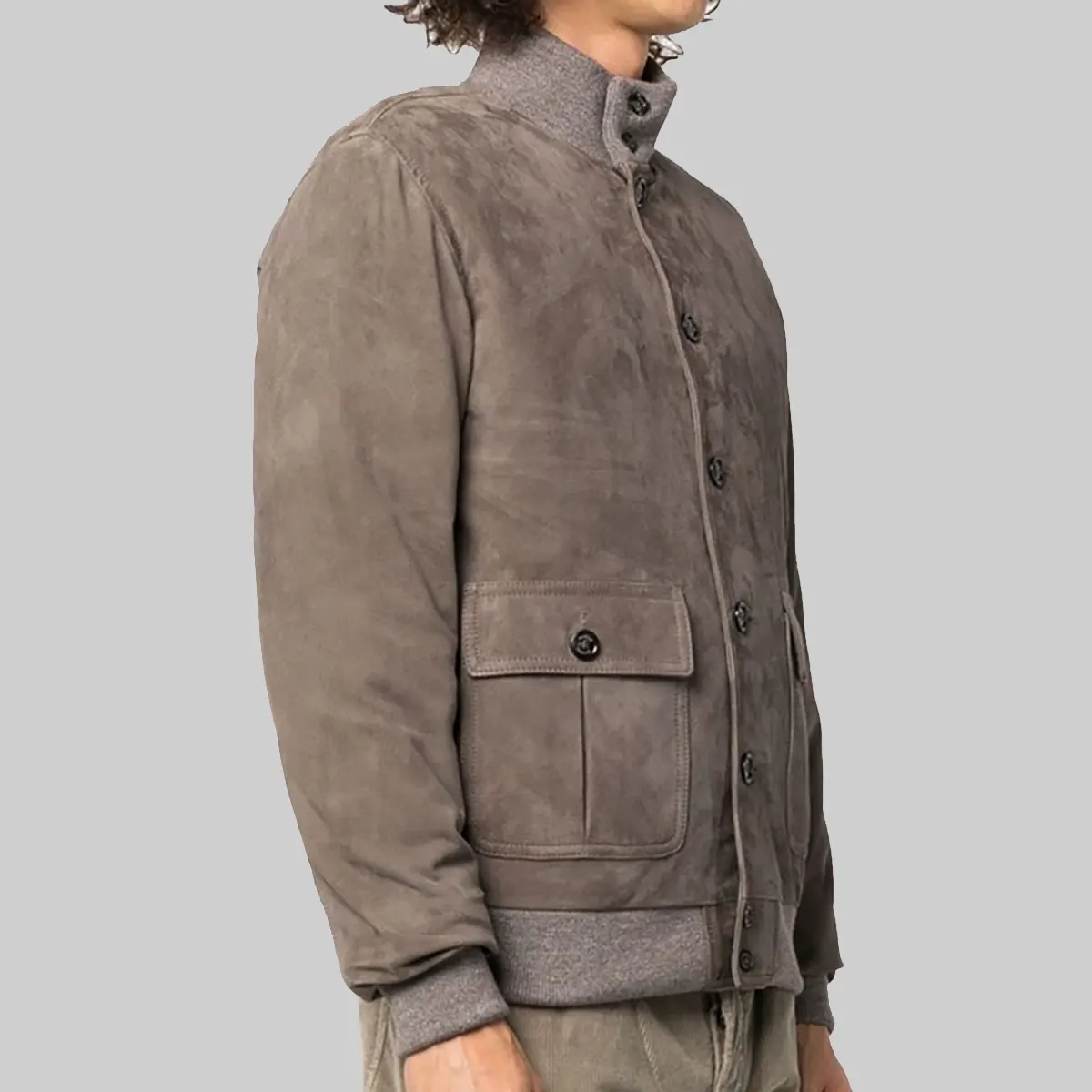 Ray Men’s Light Grey A-1 Bomber Suede Jacket