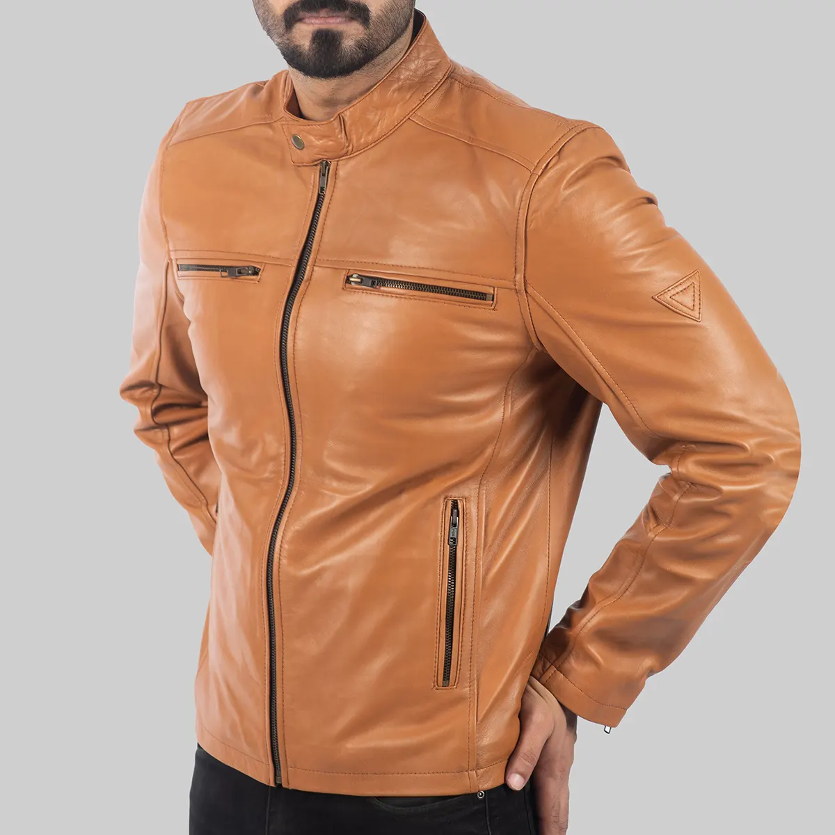 Ricky Men’s Tan Biker Leather Jacket