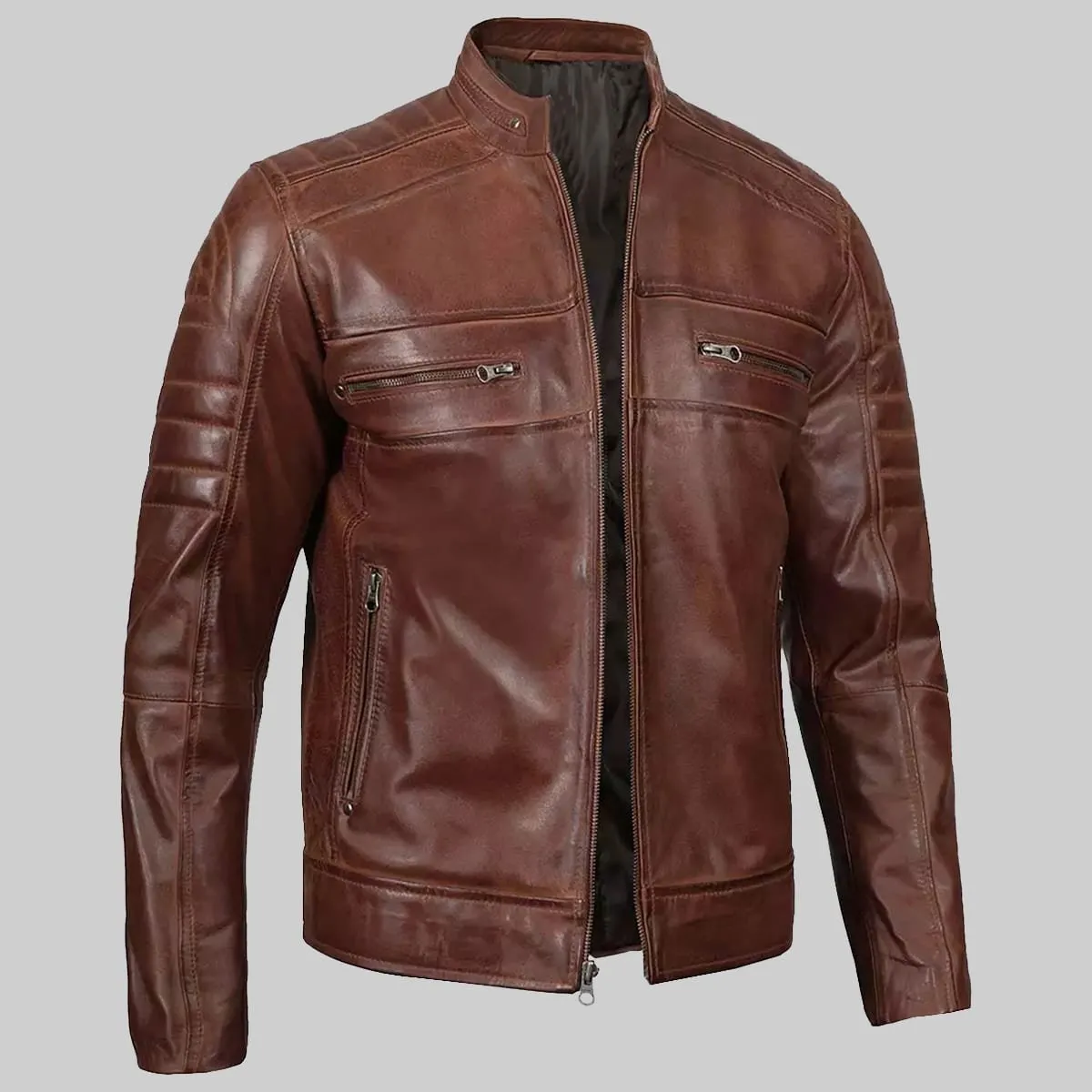 Ronny Brown Moto Leather Biker Jacket