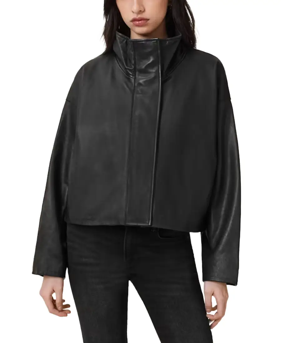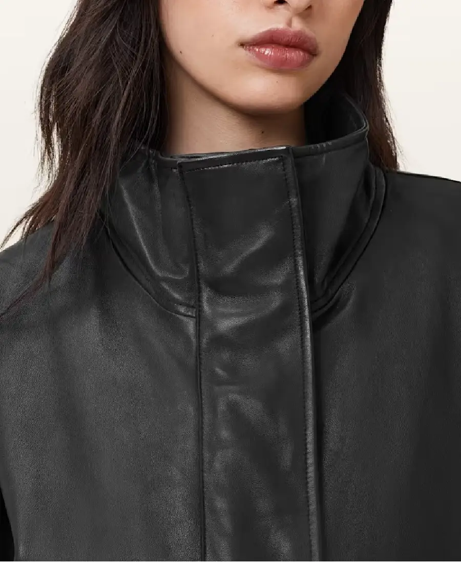 The Ryder Funnel Neck Leather Jacket is made from high quality faux leather that offers a structured feel and a sleek look, paired with a viscose lining that keeps it comfortable for long hours of wear. Its stand up collar adds a defined touch at the neckline while the combination of front zipper and snap button closure ensures a secure fit and an adjustable style. Full length sleeves with open hem cuffs provide ease of movement and a clean finish at the wrists. Two side pockets give practical space for carrying essentials and an inner pocket adds extra storage for valuables. Finished in black, this jacket delivers a bold and confident look suitable for casual outings and layered outfits.