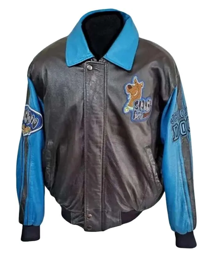 Shop The Scooby Doo Black and Blue Bomber Leather Jacket