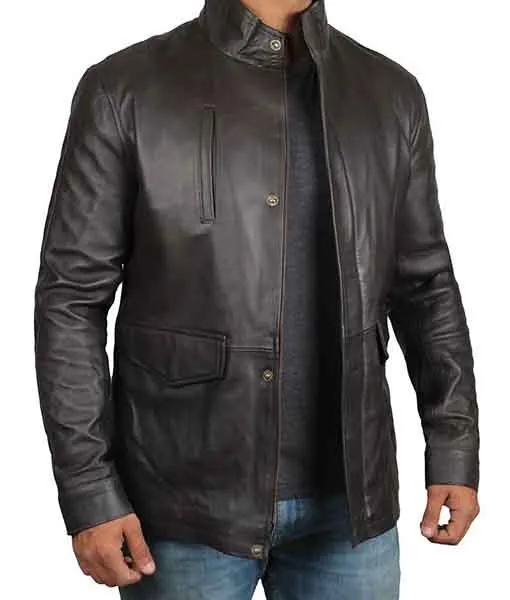 Settle Men’s Long Brown Biker Leather Jacket
