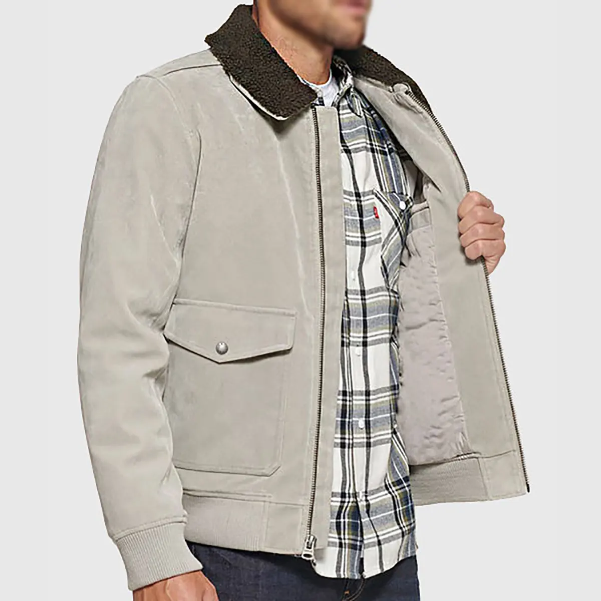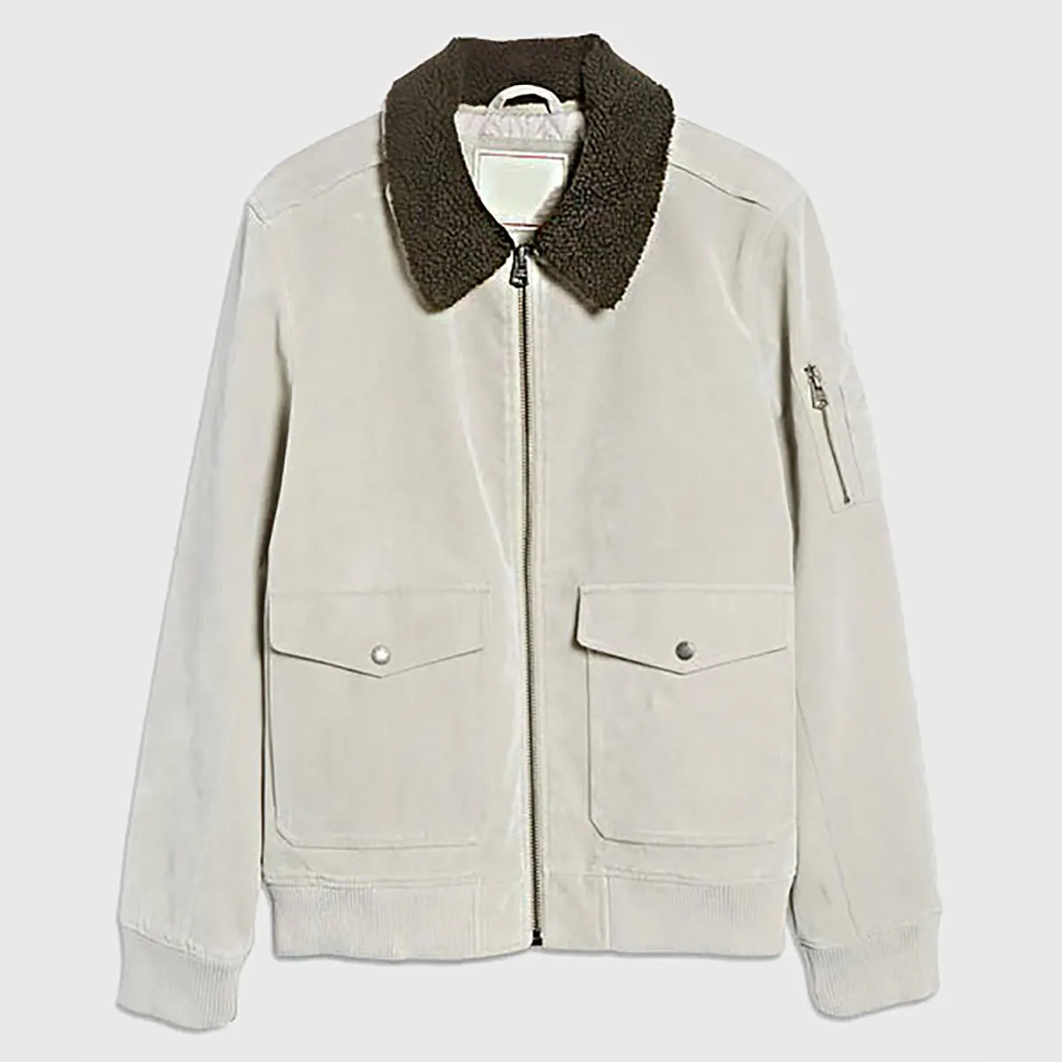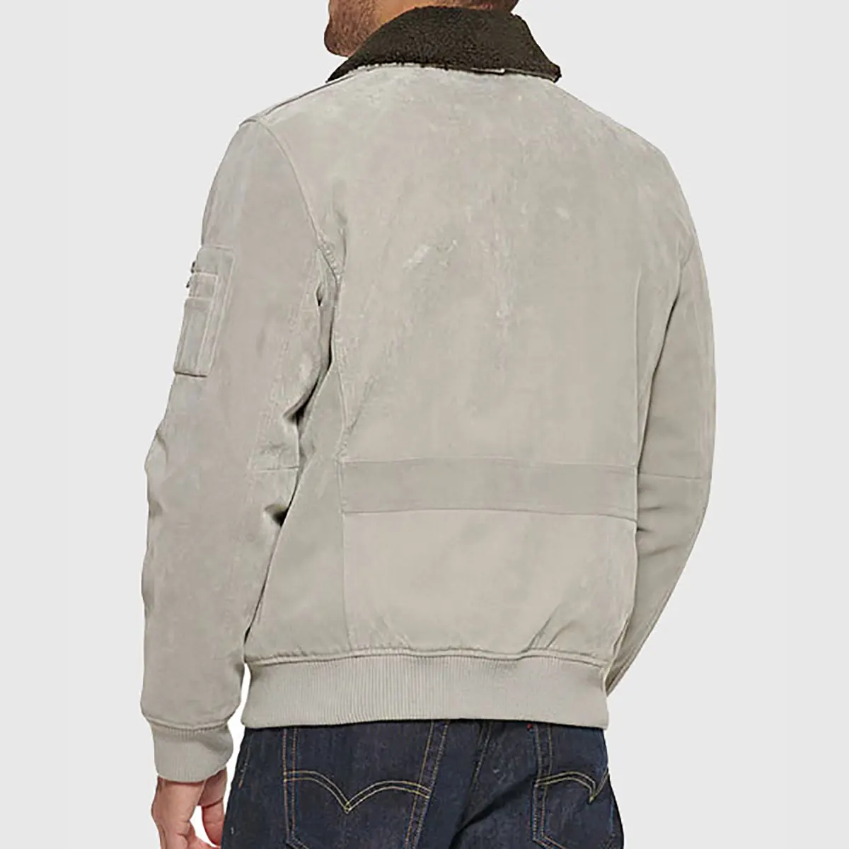 Shop Shawn Men’s Mud White Bomber Suede Jacket