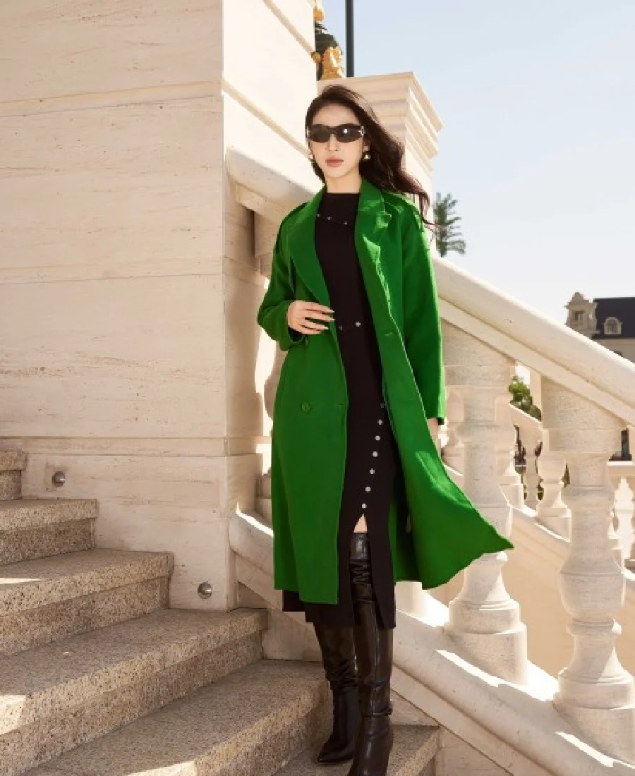 Sixdo Green Peak Lapel Neck Long Coat