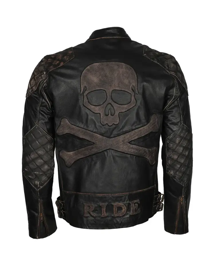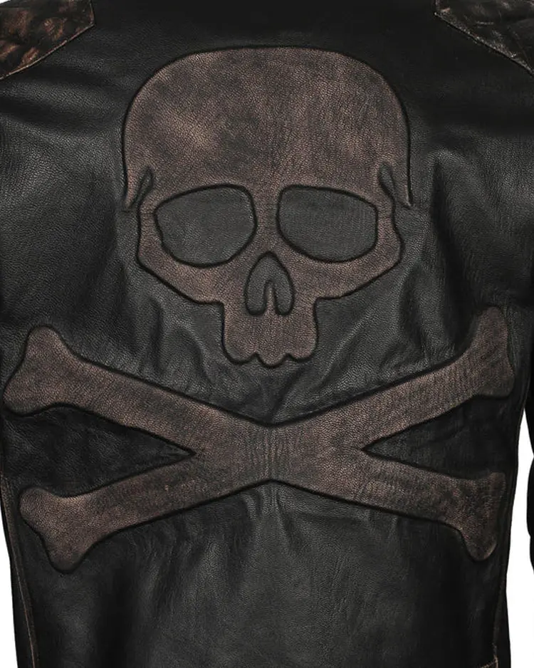 Skull Crossbones Biker Leather Jacket