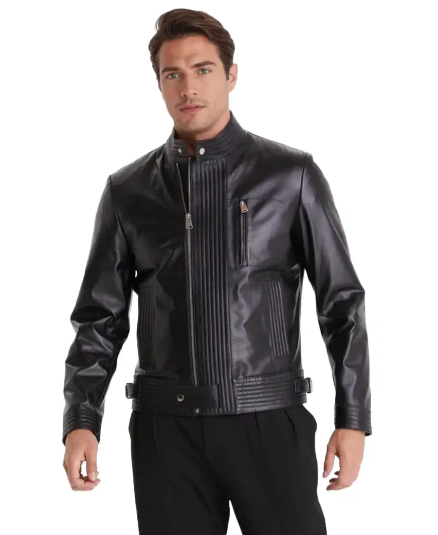 The Stanley Black Biker Leather Jacket is built for those who prefer a sharp road readystyle with practical detailing. Made from real leather it carries a tough feel that adapts comfortably with regular wear while keeping its solid structure. The short neck collar adds a focused touch around the neckline giving it a classic rider inspired look. A front zipper closure secures the jacket firmly and keeps the design direct and confident. Full length sleeves with open hem cuffs allow easy movement and a relaxed fit at the wrists. The viscose lining provides a soft layer against the skin making it suitable for long hours in cooler weather. Two side pockets offer quick access to daily essentials while two inner pockets add secure storage and a chest pocket enhances functionality. The black color strengthens its strong character making it a reliable option for pairing with denim boots and layered street style outfits.