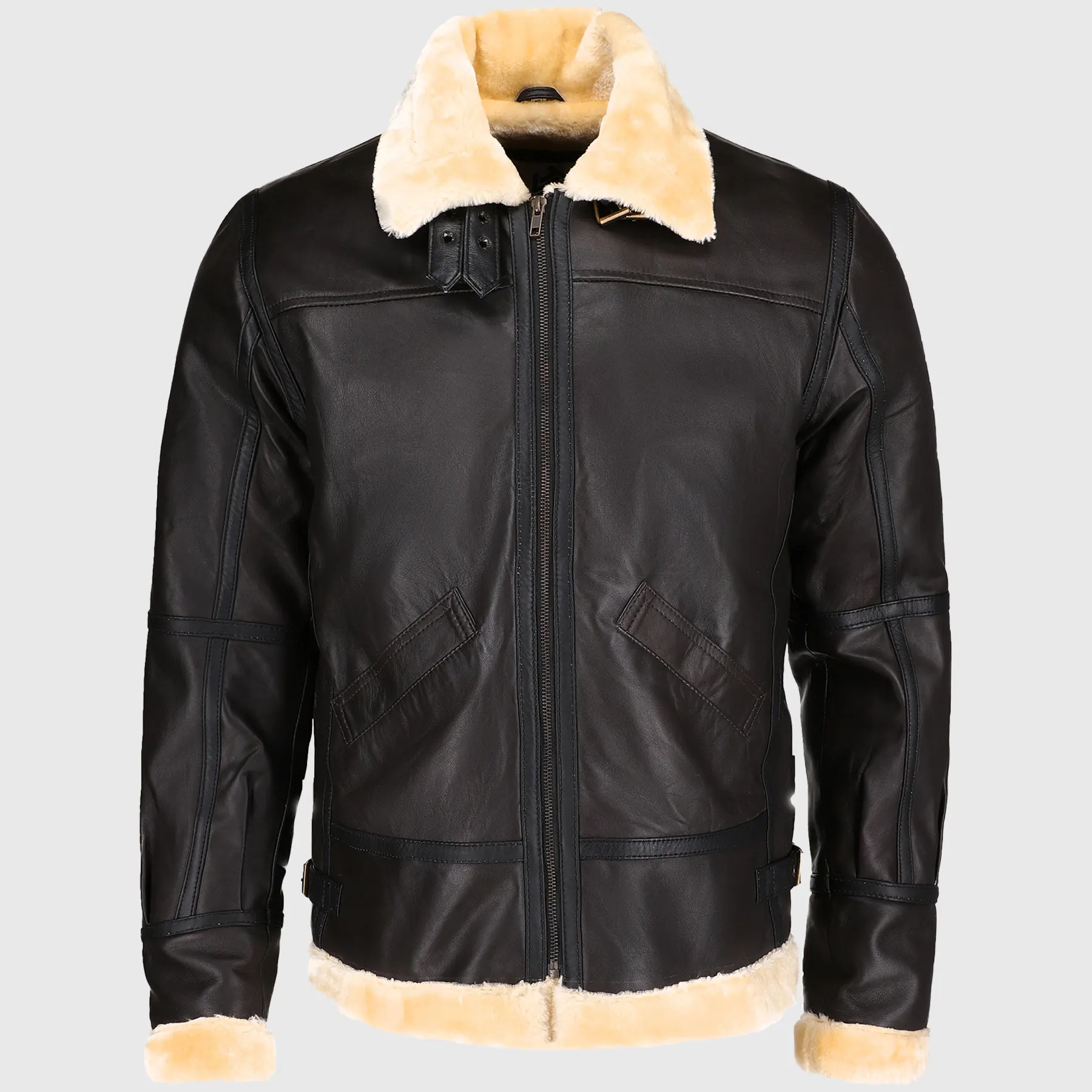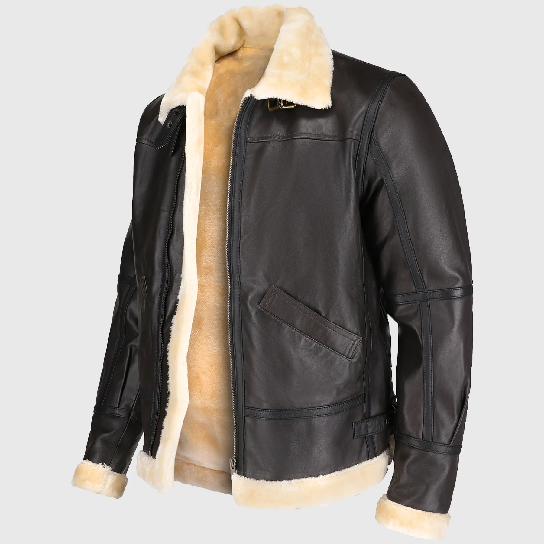 Shop Steve Men’s Brown B-3 Bomber Leather Jacket