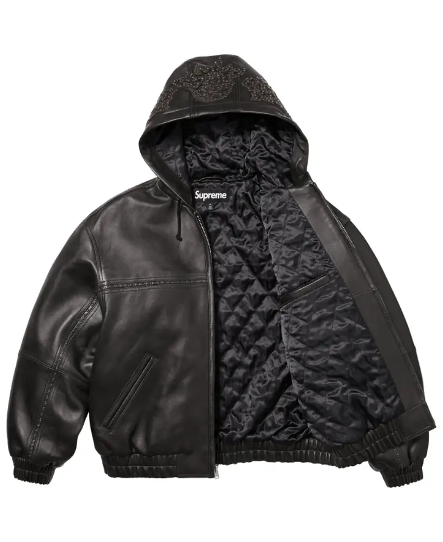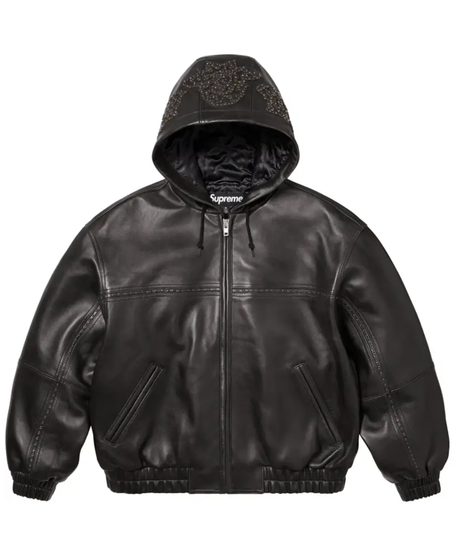 Studded Hooded Leather Jacket