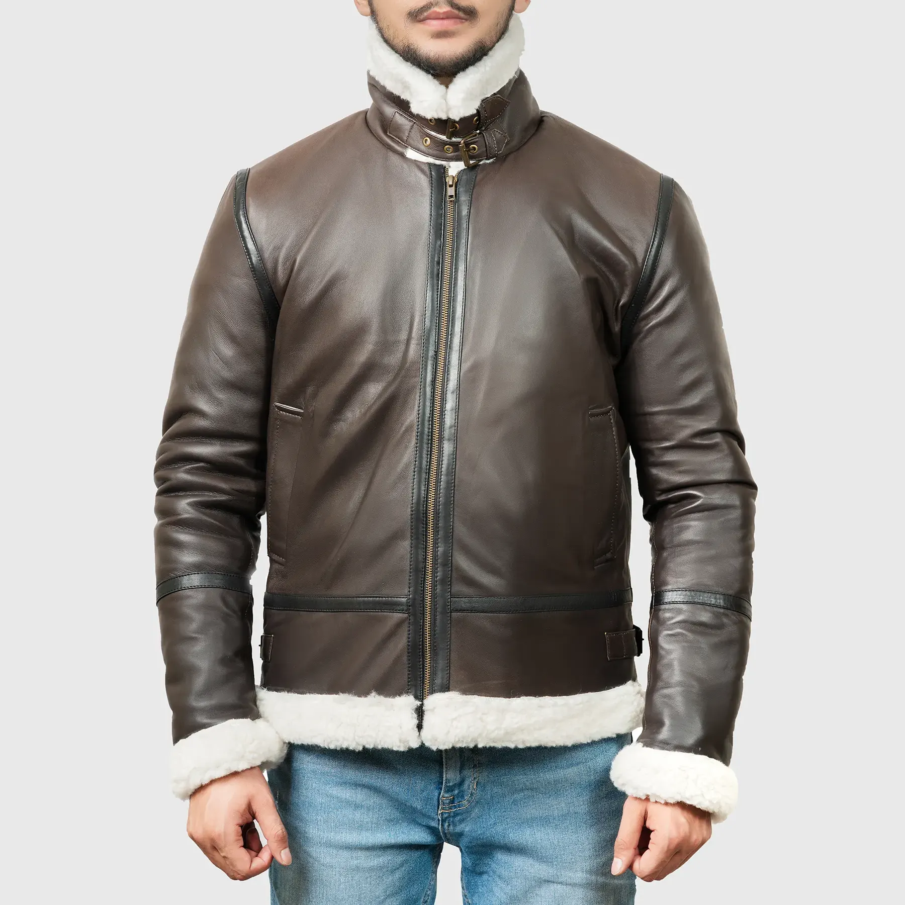 Theodore Men’s Brown B-3 Bomber Leather Jacket