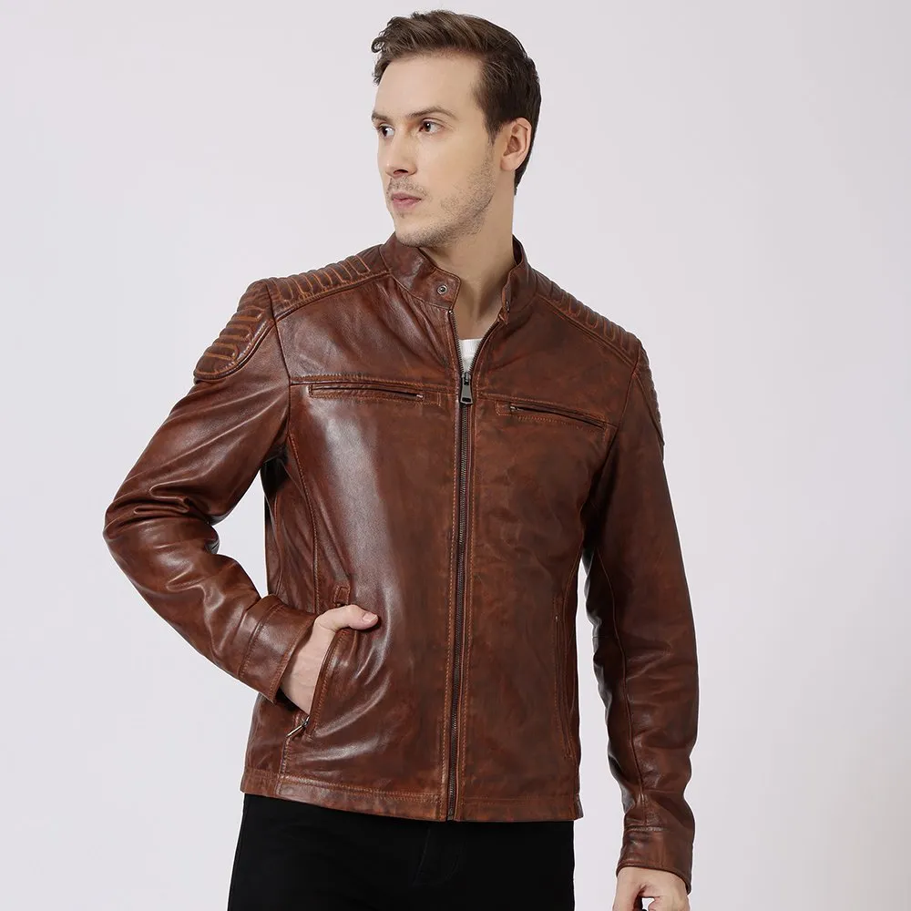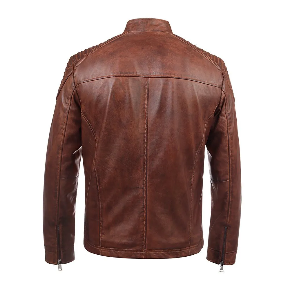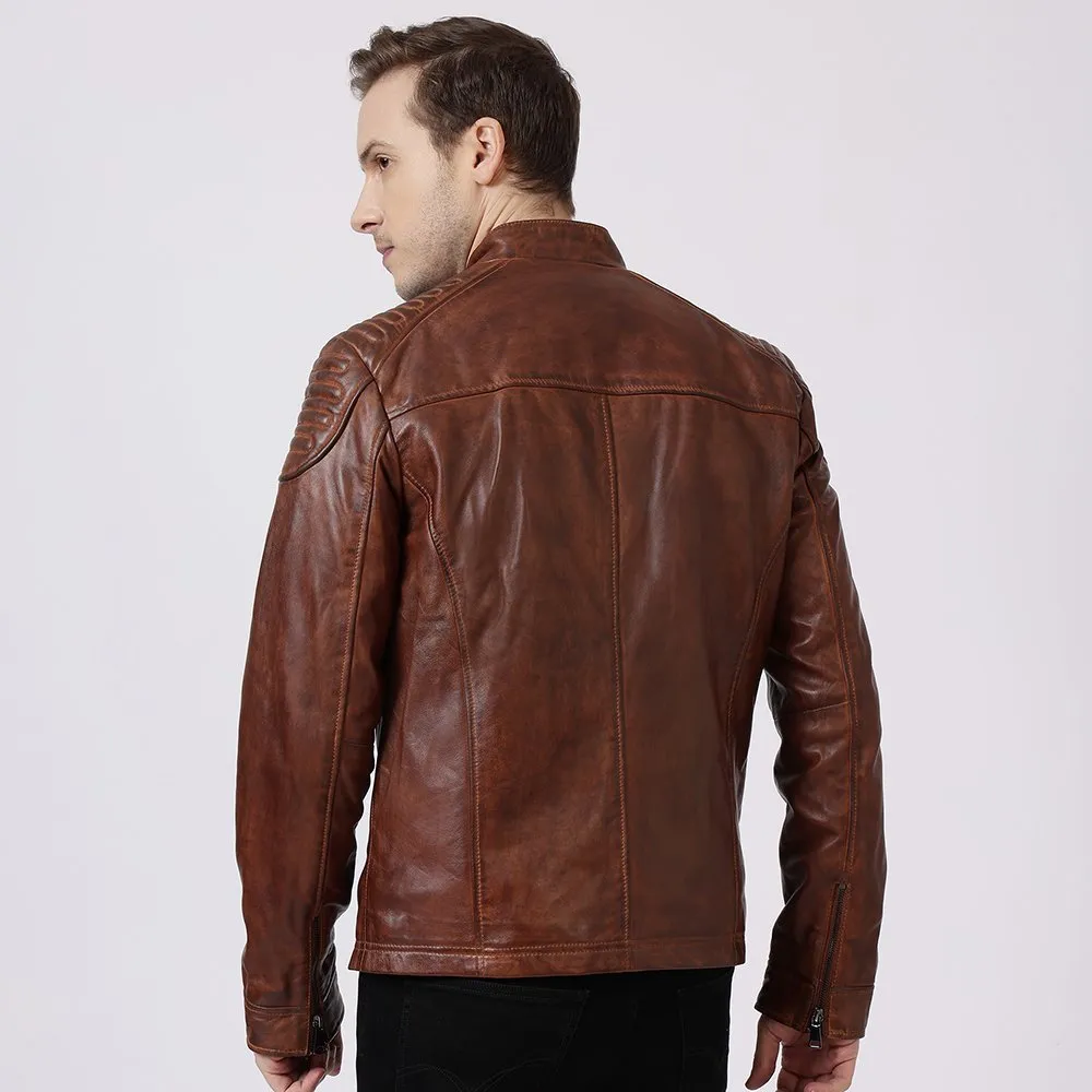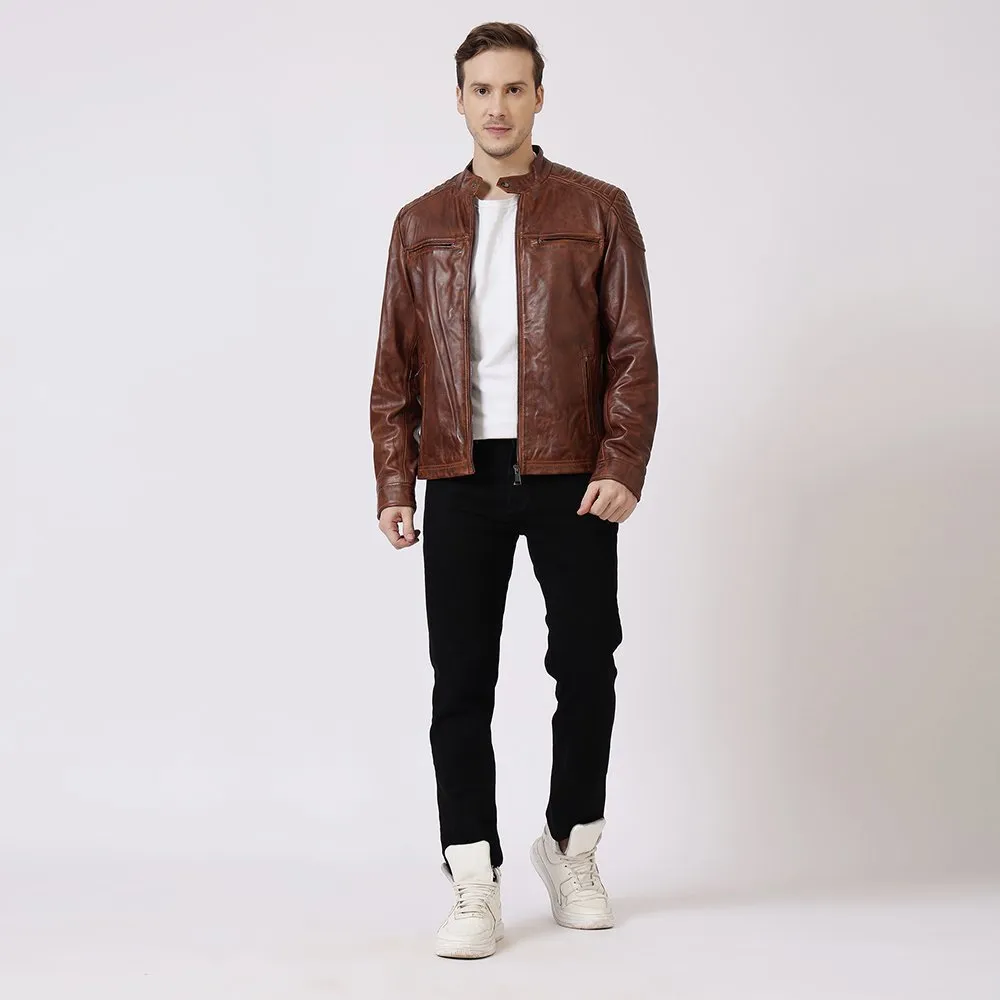 Shop The Thomas Antique Brown Leather Biker Jacket