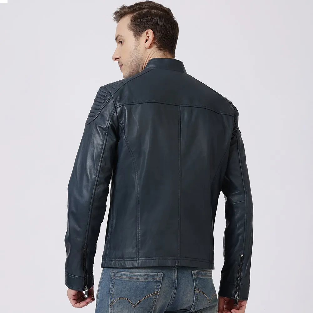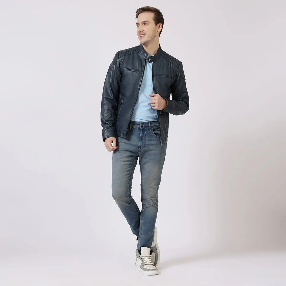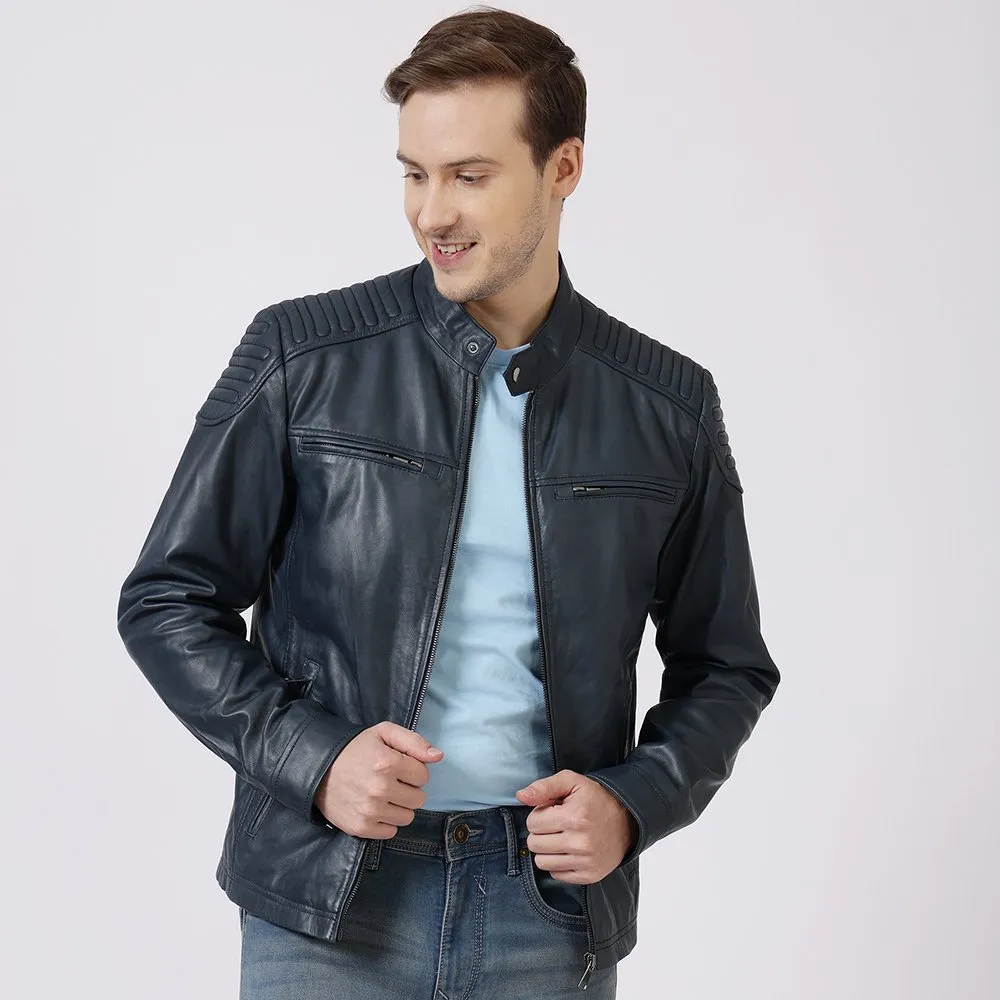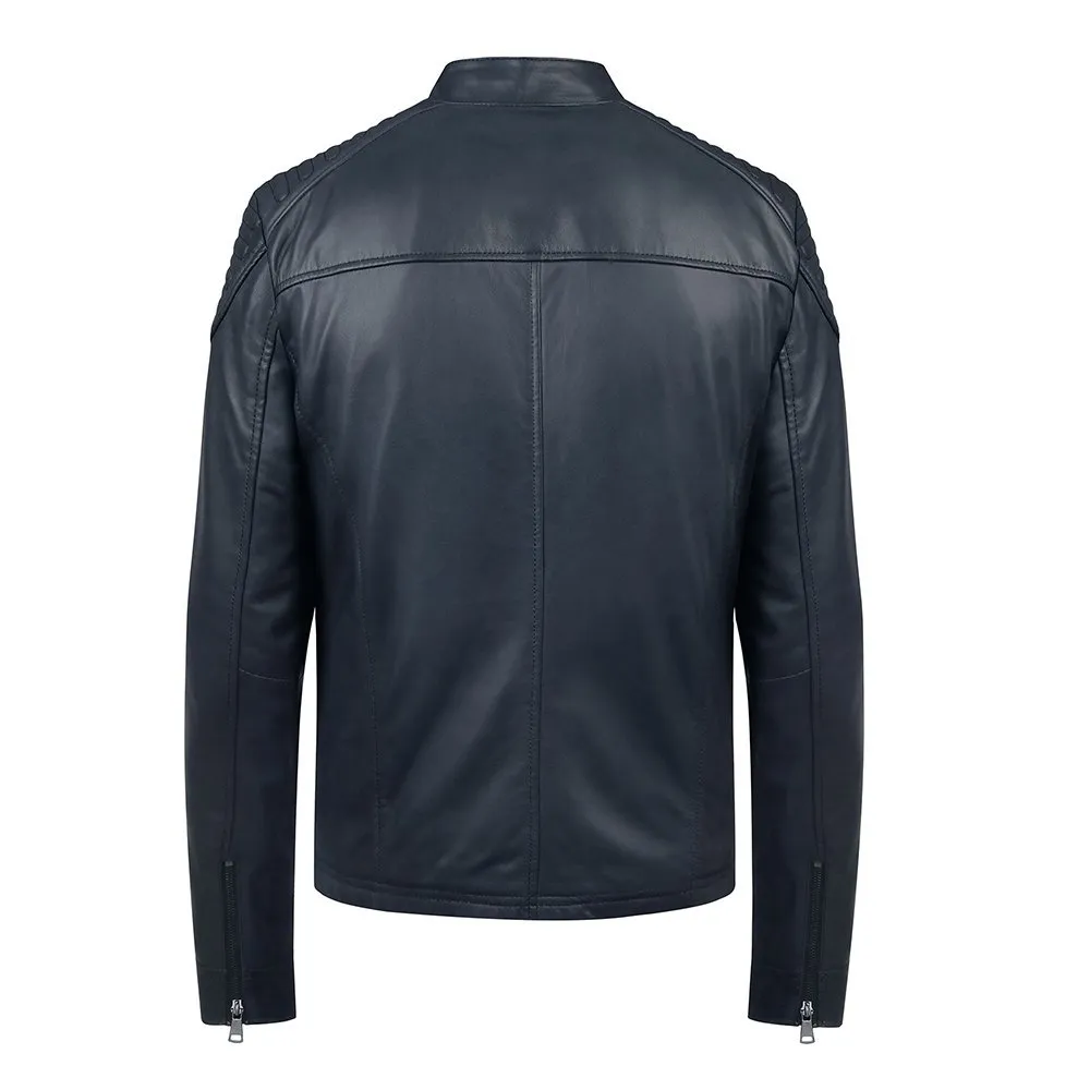 Thomas Navy Leather Biker Jacket