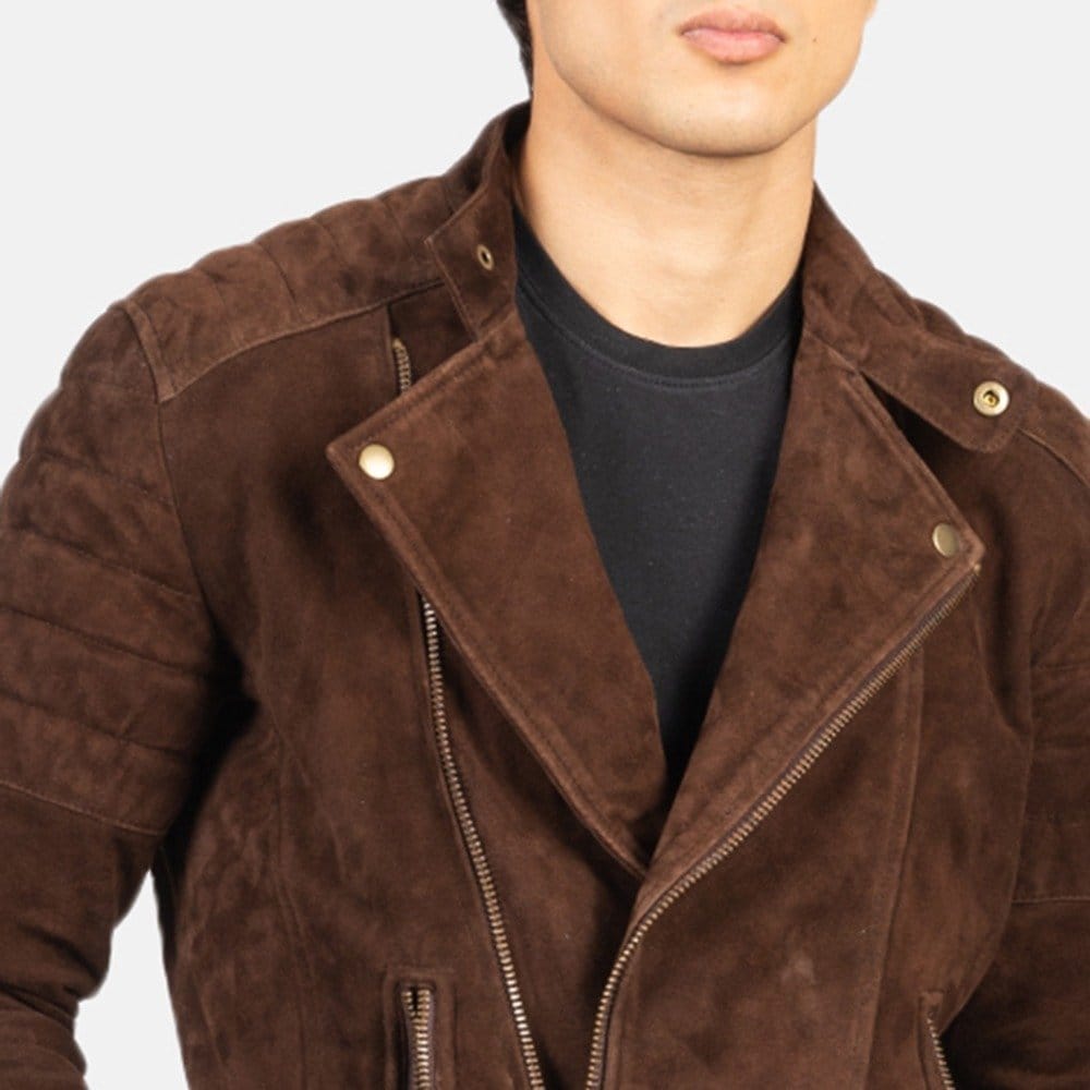 But the benefits of the Faisor Mocha Suede Biker Jacket go beyond its stylish appearance. The real leather material not only looks luxurious but also offers long-lasting wear, ensuring it remains a staple in your wardrobe for years to come.