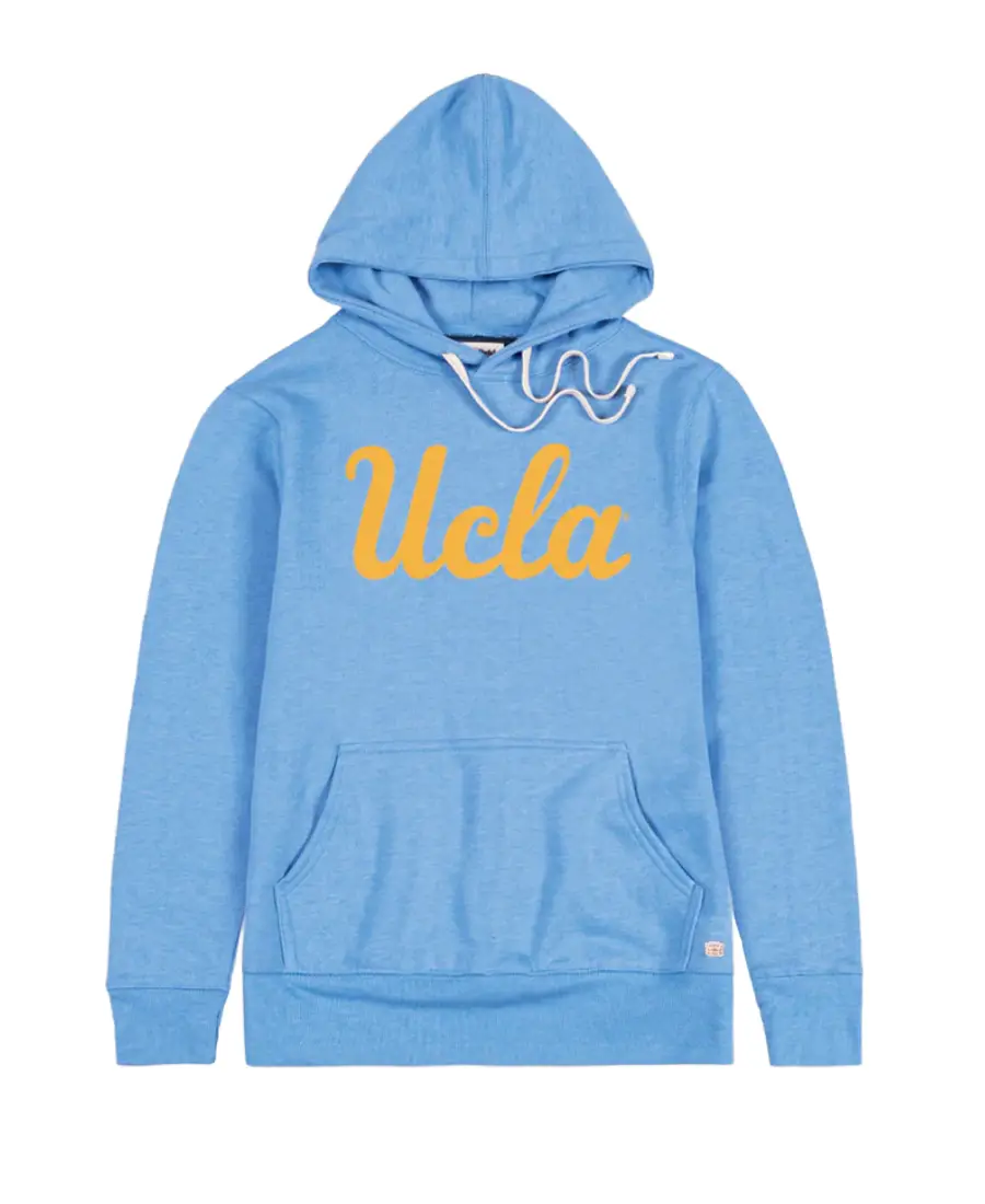 The UCLA Script Hoodie is made from soft fleece fabric in a rich blue color that offers warmth and everyday comfort. It features an adjustable hood with drawstrings that allows a secure fit around the head. The hoodie comes with full length sleeves and zipped cuffs that add a modern touch to the design. A large kangaroo pocket on the front provides space for keeping hands warm or carrying small items. This hoodie delivers a relaxed casual style that works well for campus wear, daily outings, or laid back streetwear looks.