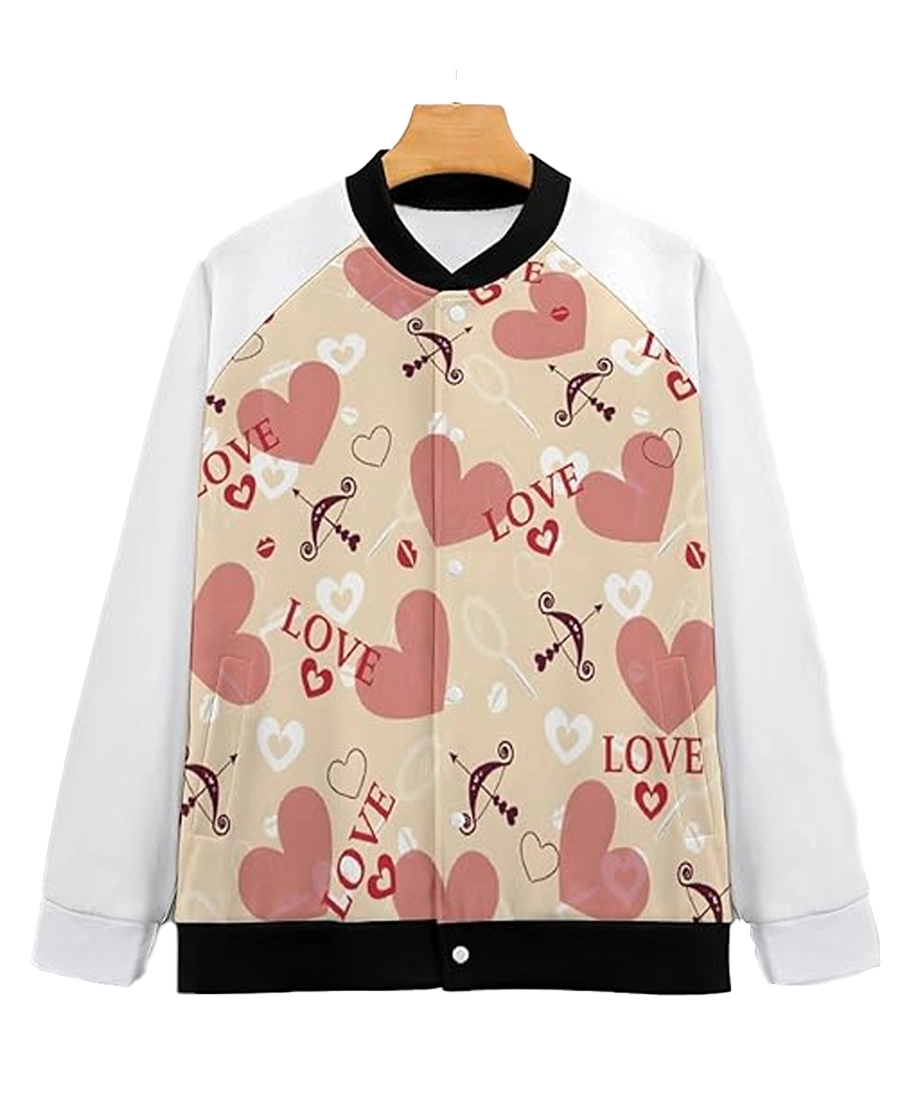 Valentine’s Day Love Heart Pattern Varsity Jacket