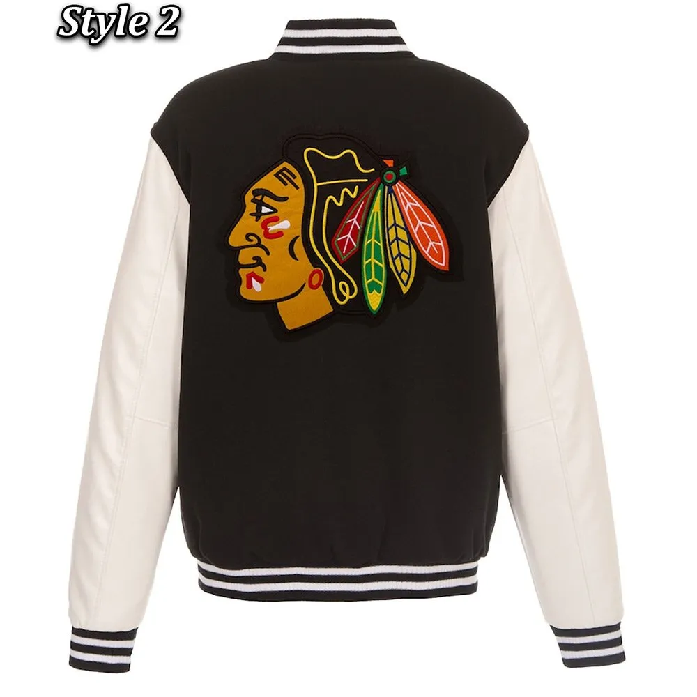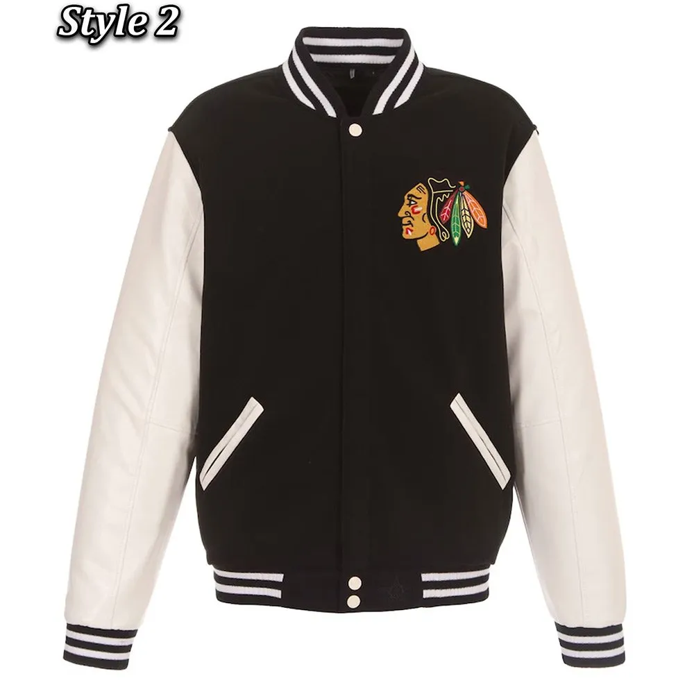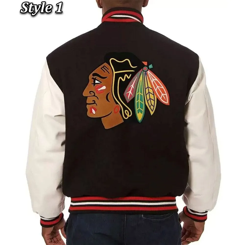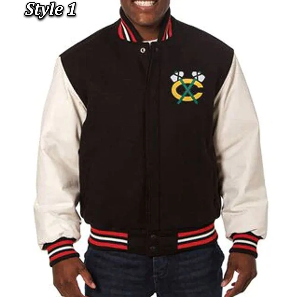 Chicago Blackhawks White and Black Varsity Jacket