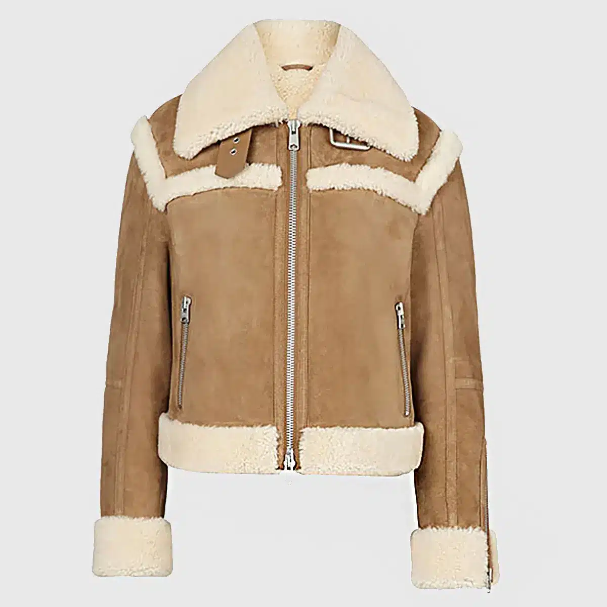 Vickie Women’s Brown Shearling Suede Aviator Jacket