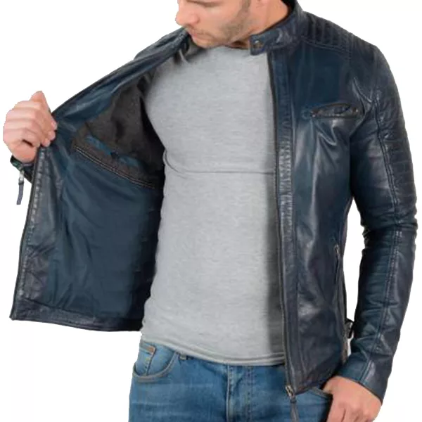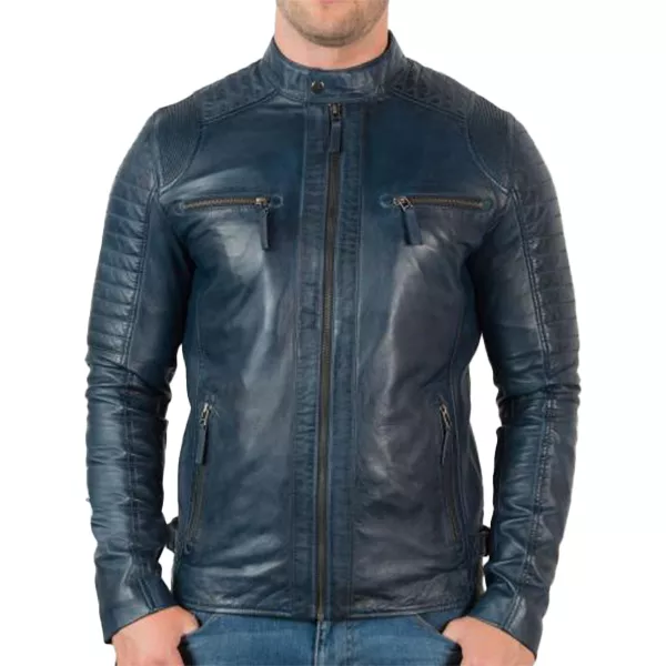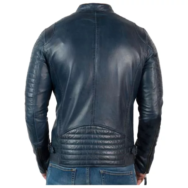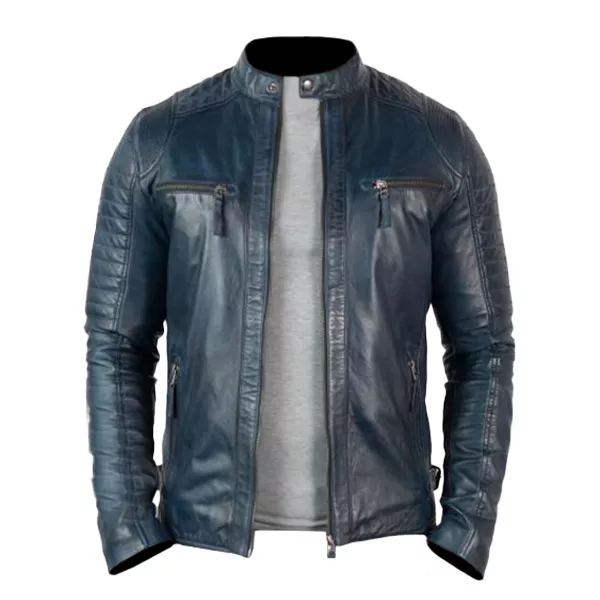 Vintage Cafe Racer Distressed Blue Motorcycle Leather Jacket