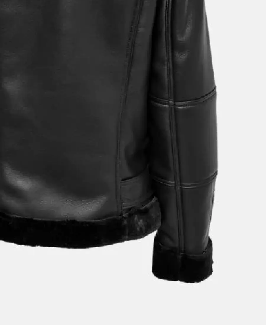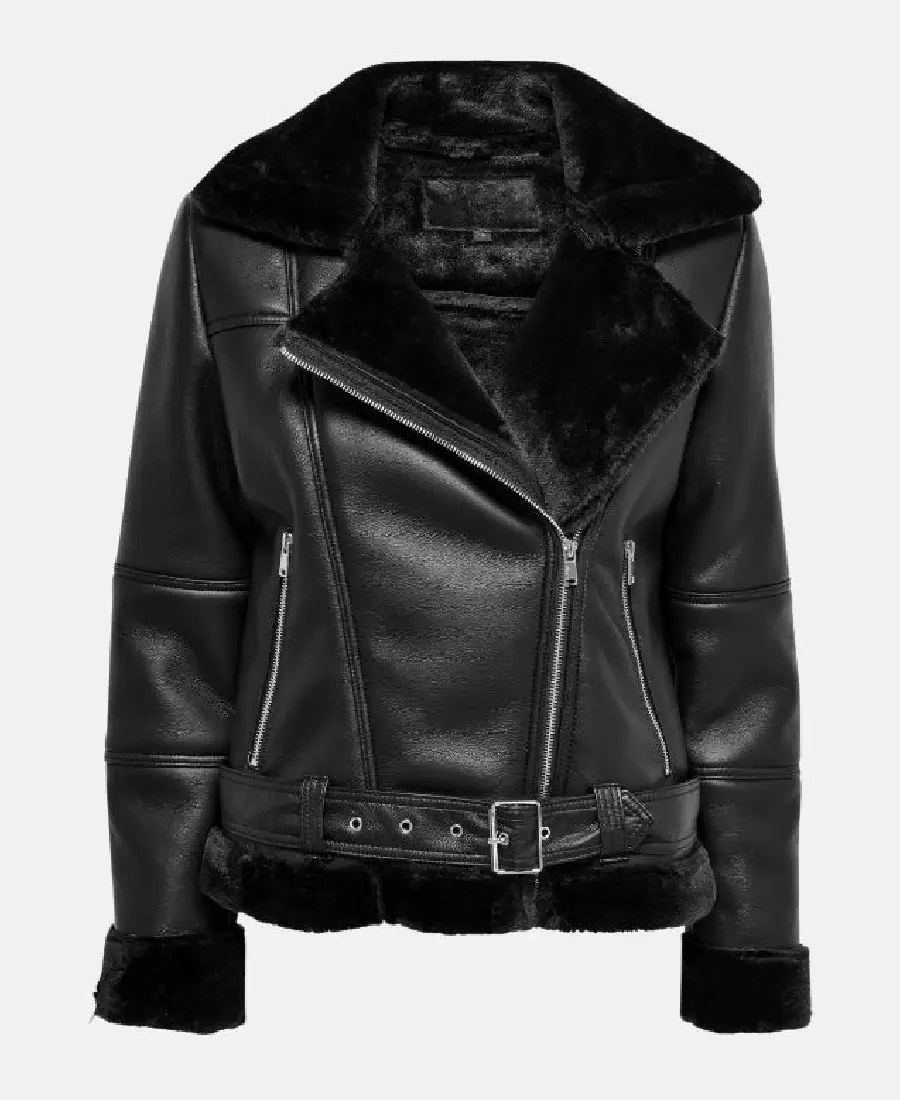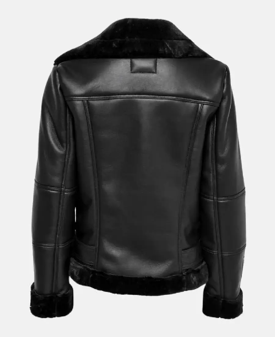 Winter Women Black Shearling Leather Jacket