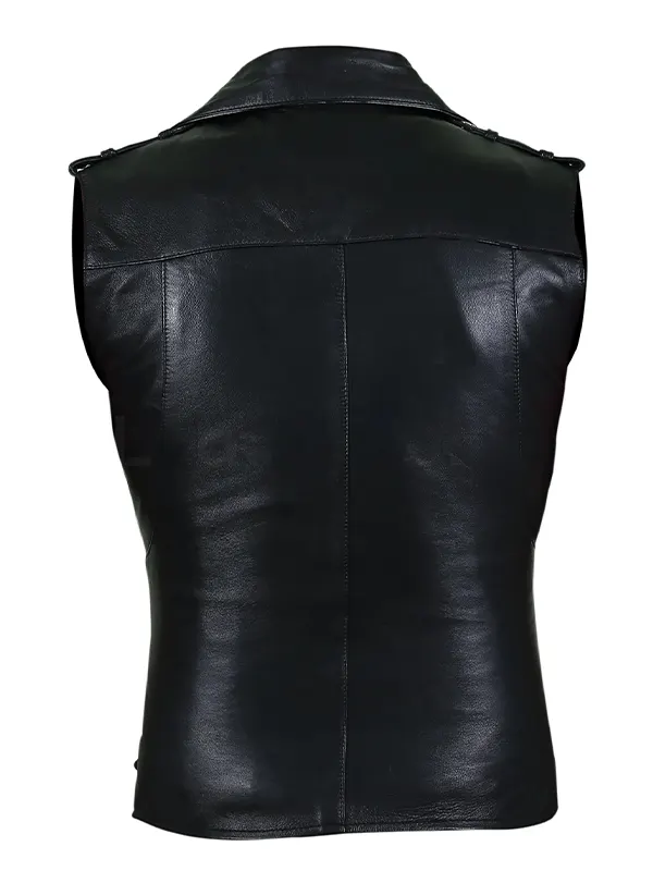 Women Classic Outwear Black Leather Moto Vest