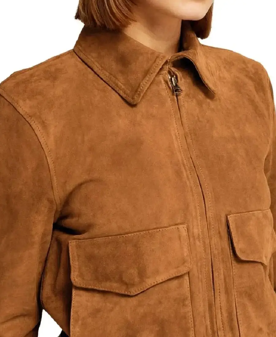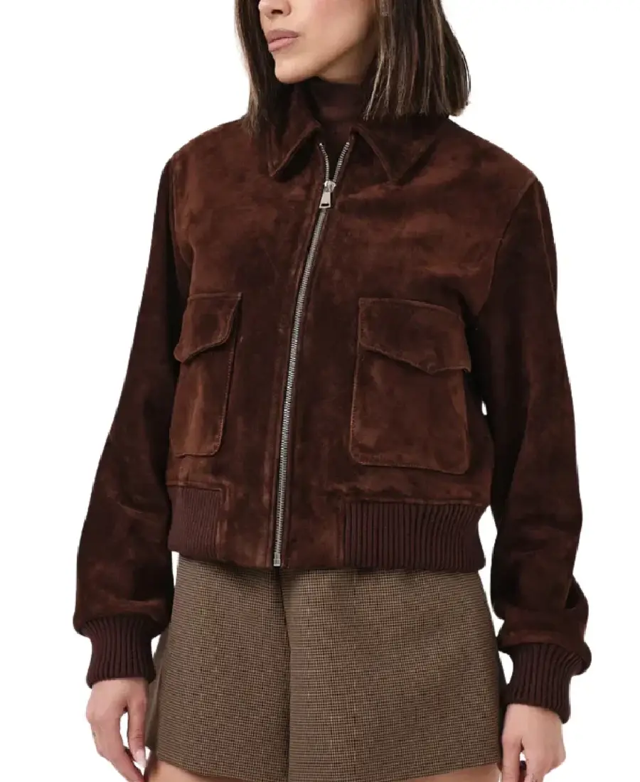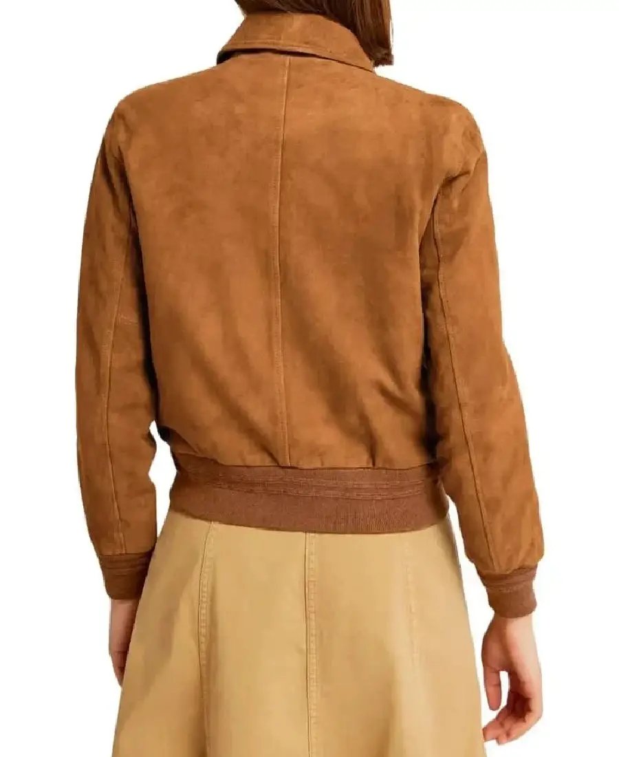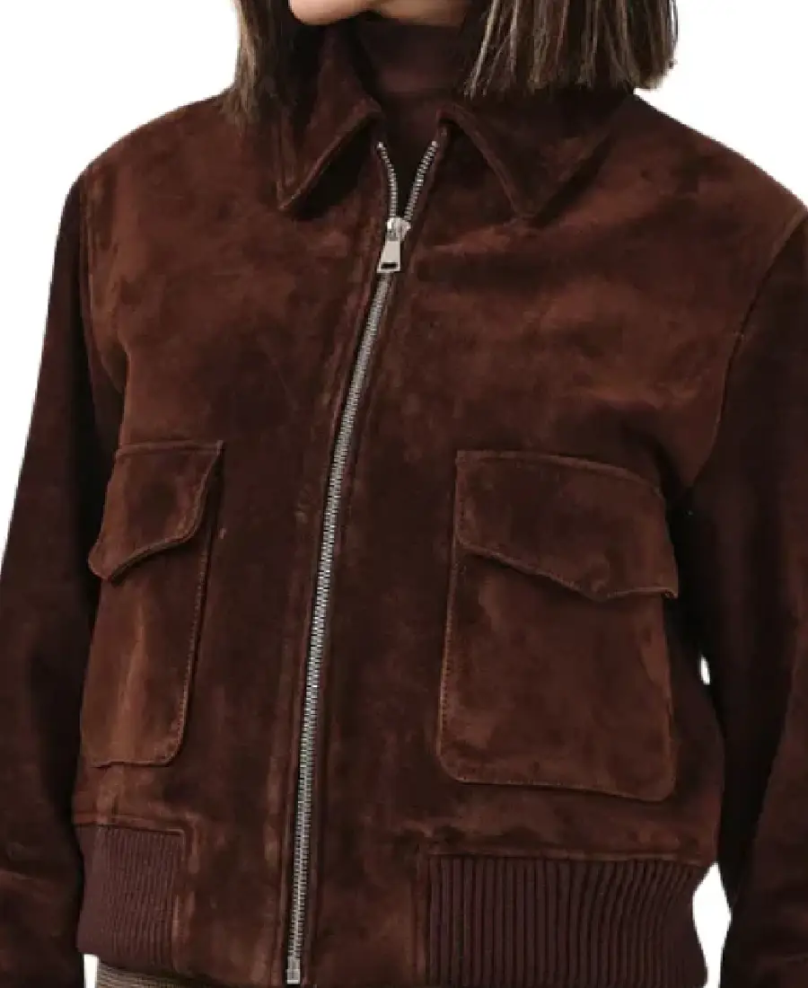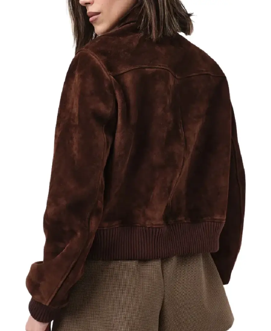 Women Dark Brown Suede Bomber Jacket
