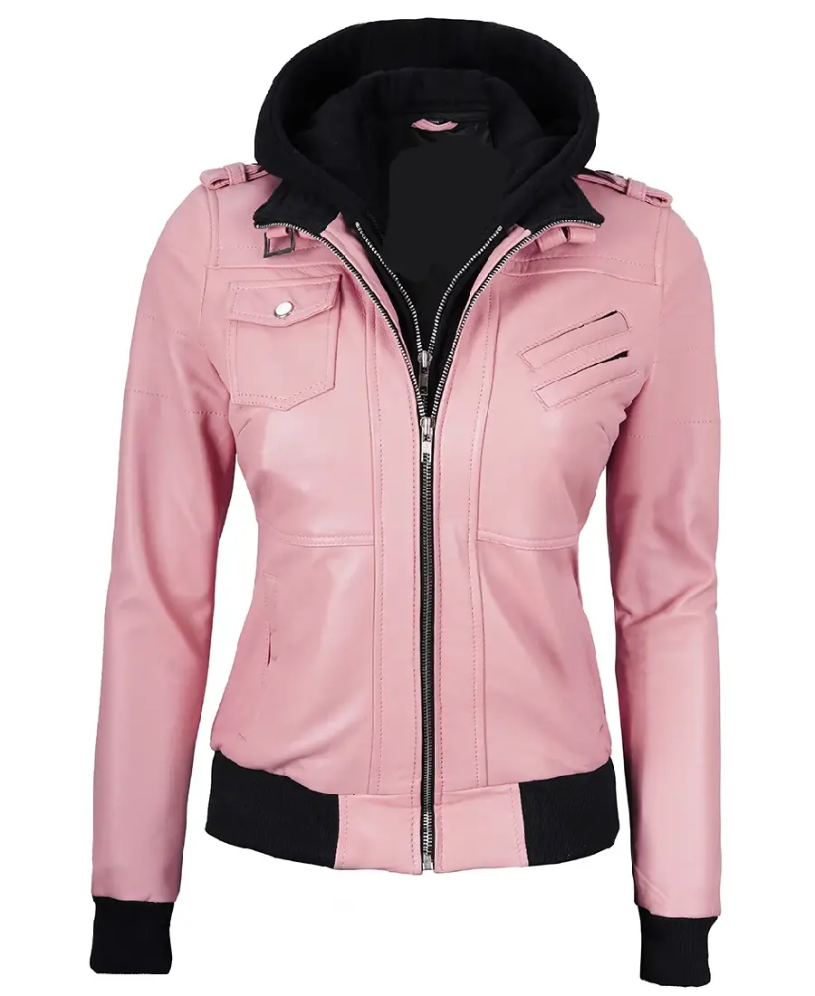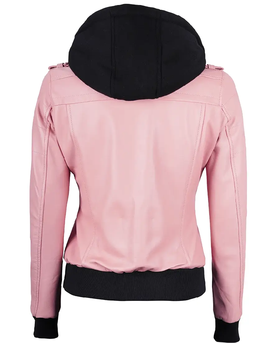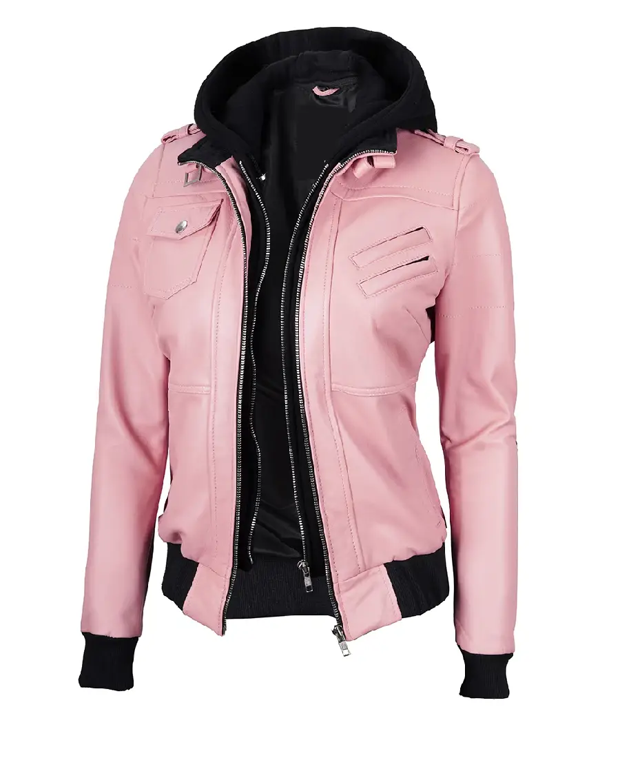Shop The Women Edinburgh Pink Leather Bomber Jacket