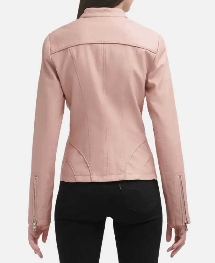Shop The Women Light Pink Cafe Racer Leather Jacket
