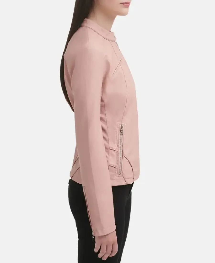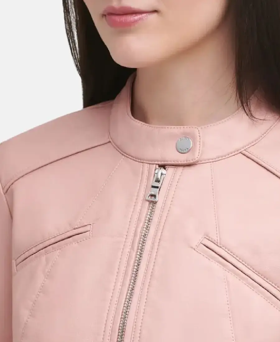 Women Light Pink Cafe Racer Leather Jacket