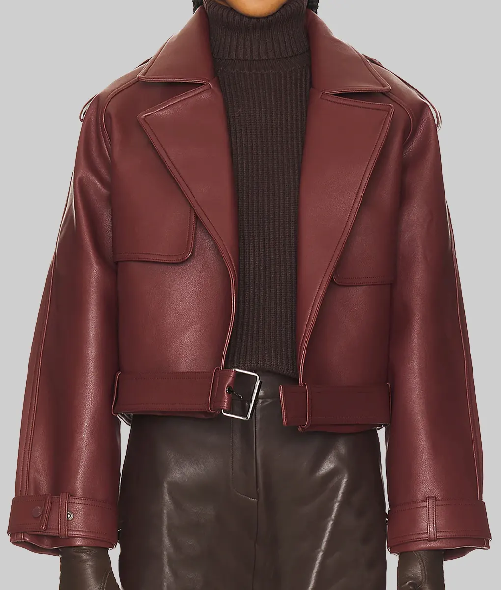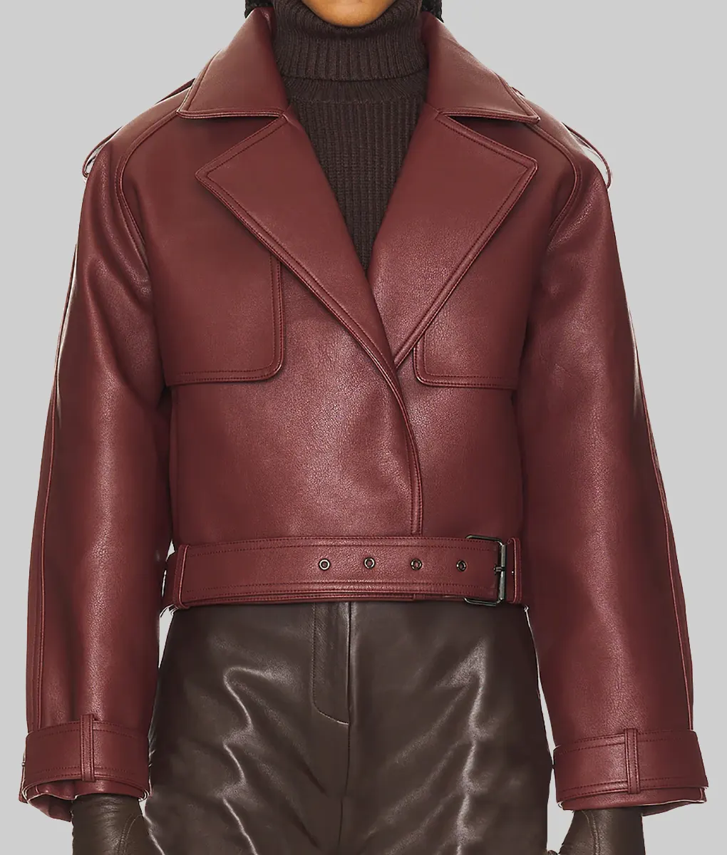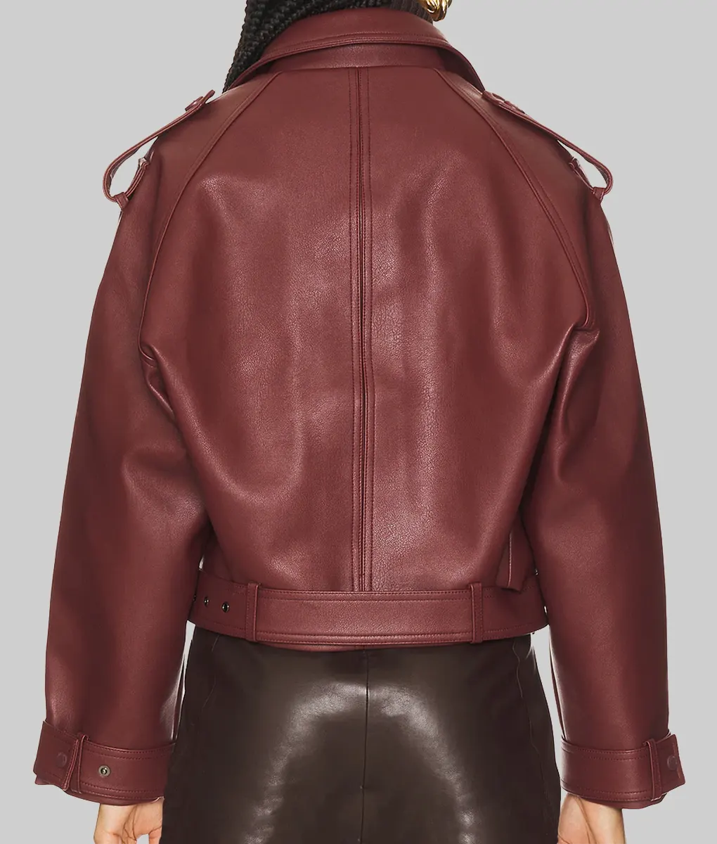 Shop The Women Maroon Biker Fuax Leather Bomber Jacket