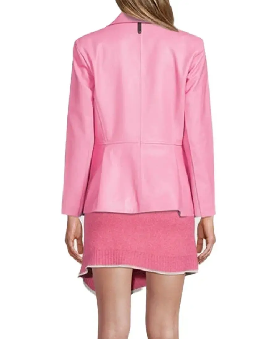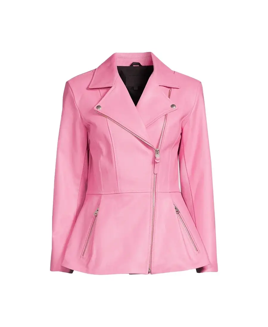 Women Peplum Pink Leather Jacket