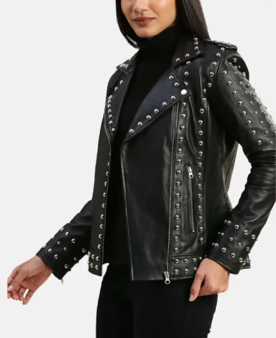 Shop The Women Studded Punk Motorcycle Leather Jacket