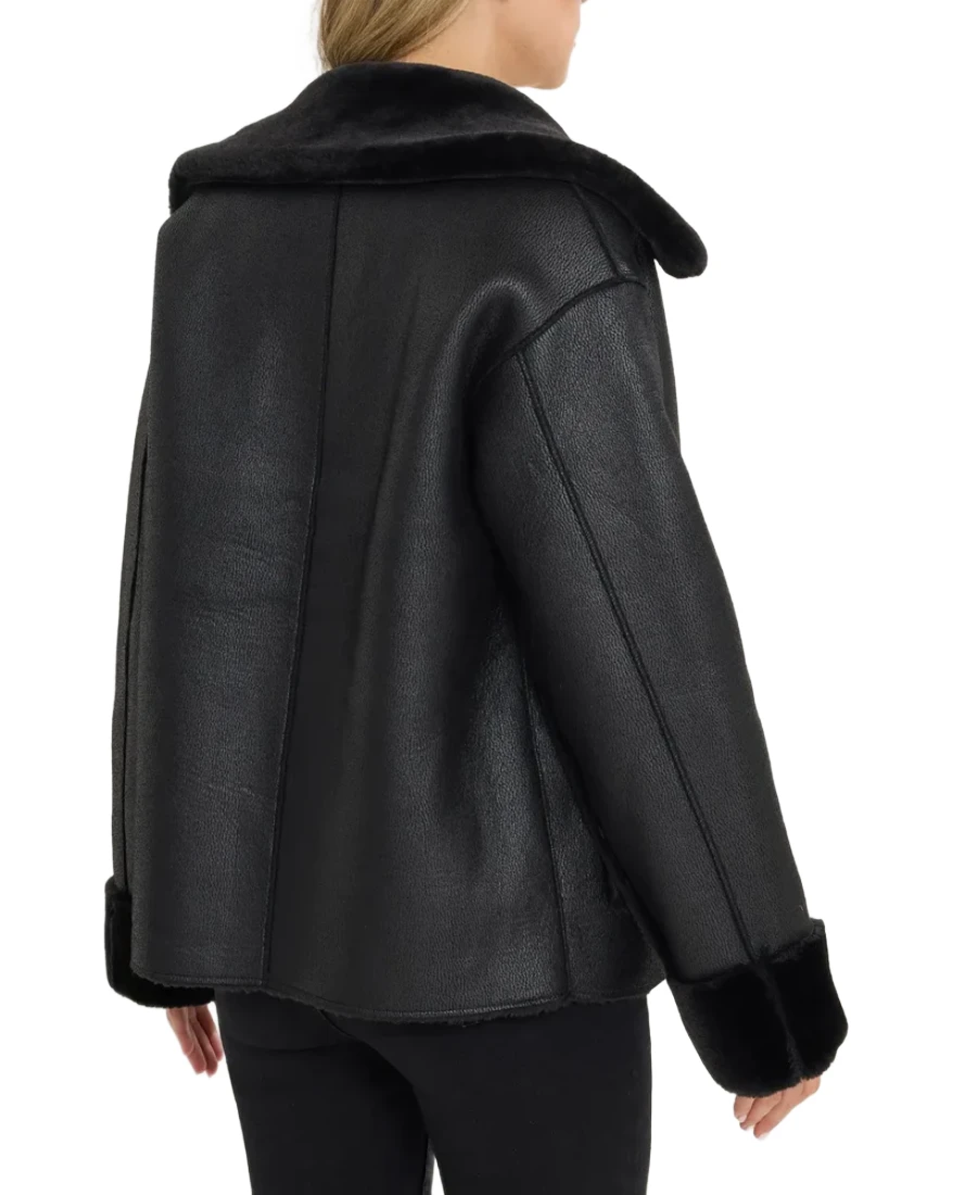 Shop The Women’s Black Shearling Aviator Leather Jacket