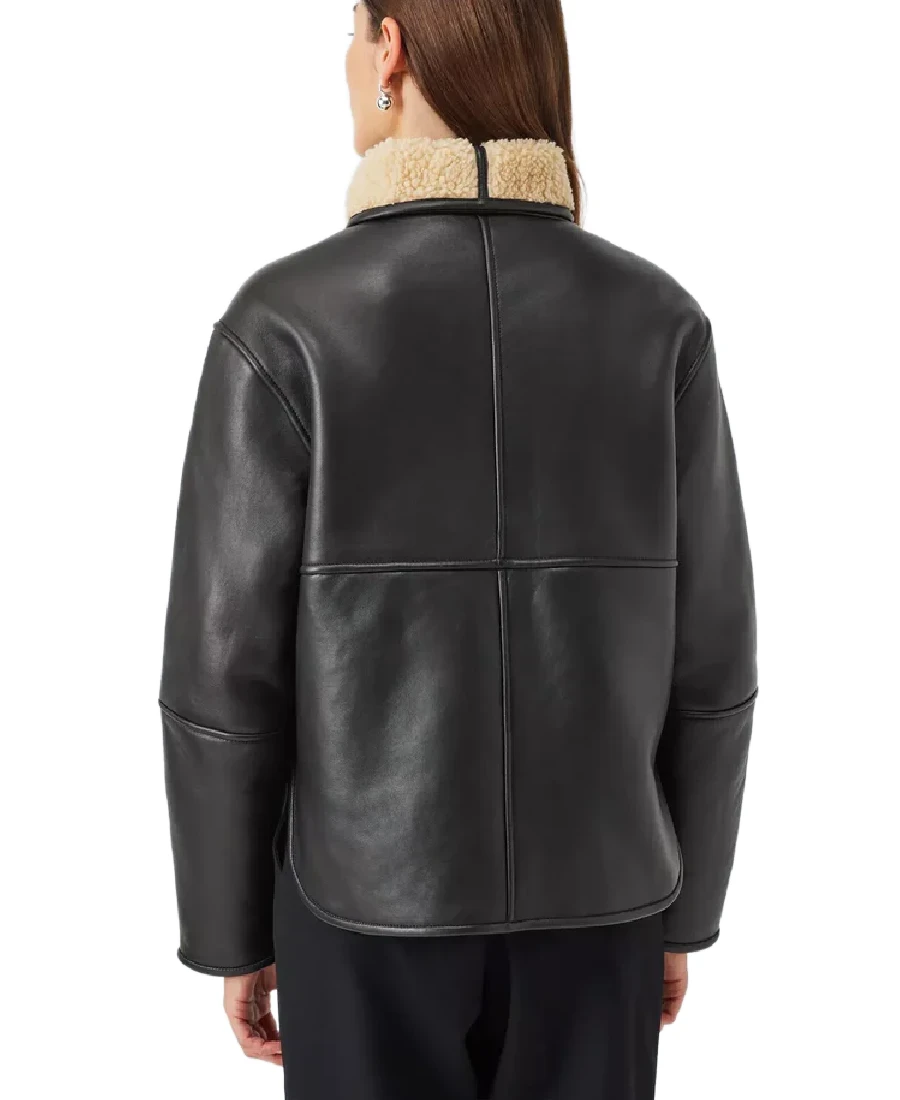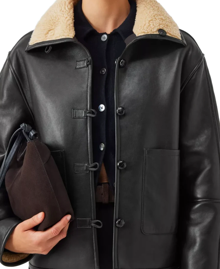 Shop The Women’s Black Sherpa Collar Leather Jacket