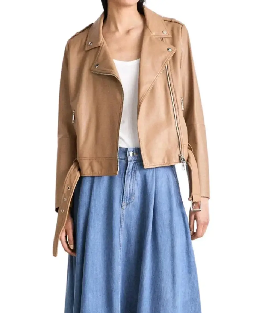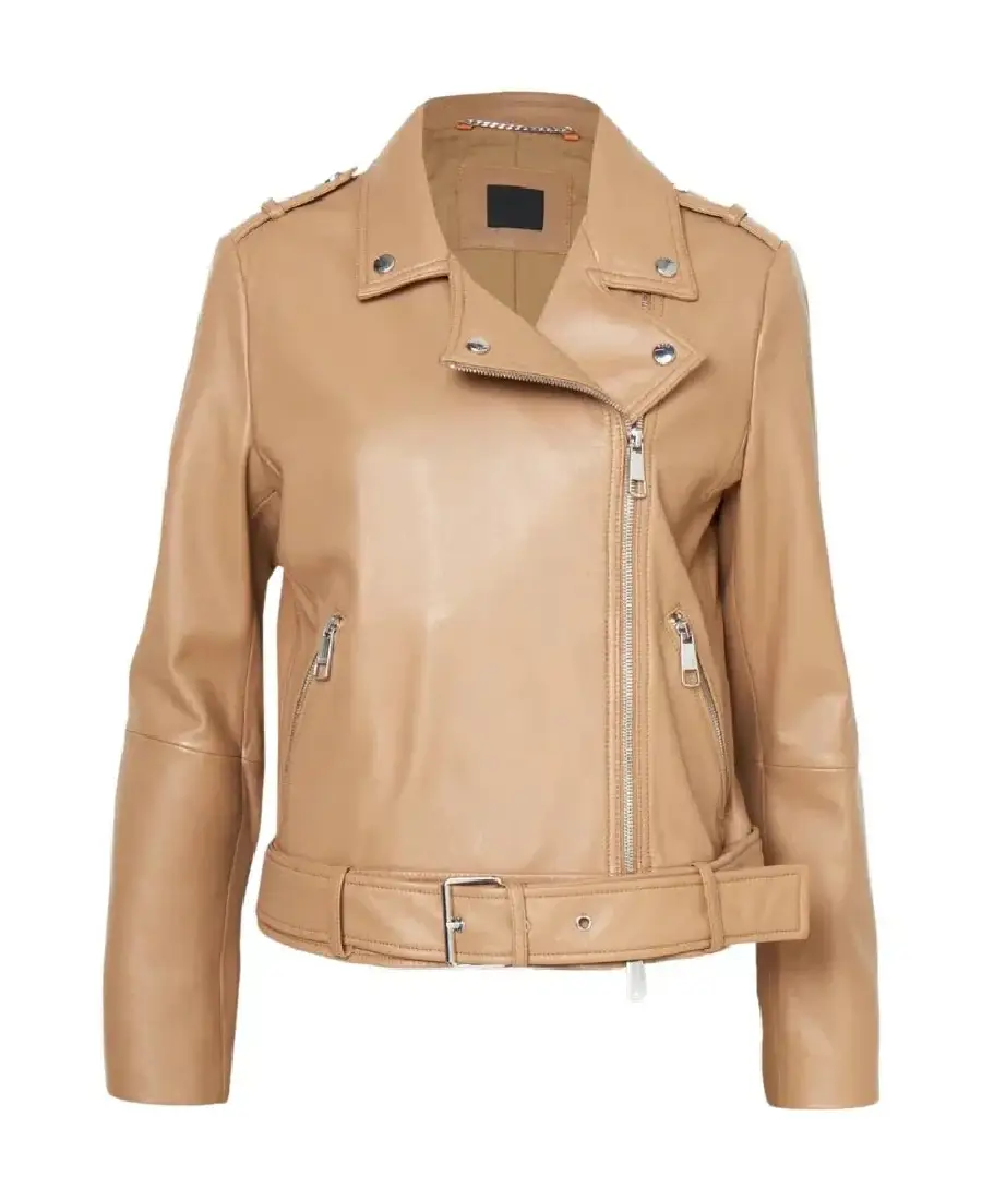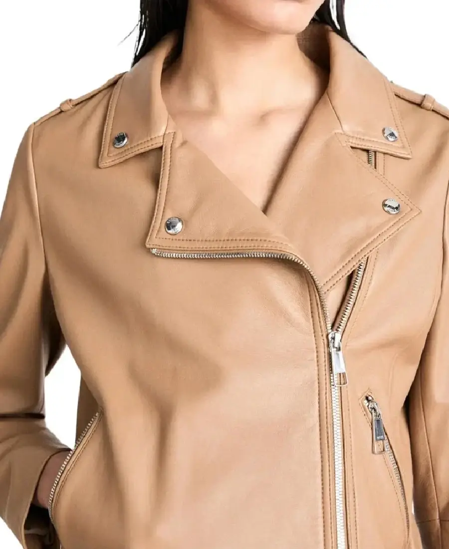 Women’s Camel Brown Leather Biker Jacket