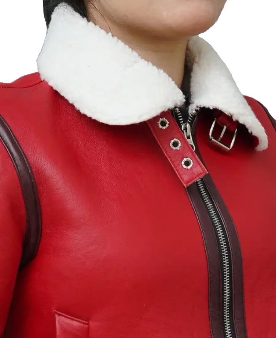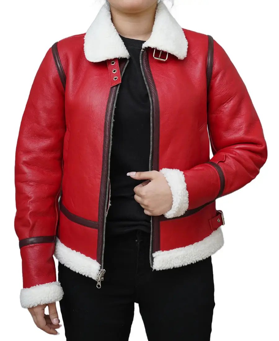 Womens Christmas Shearling Leather Jacket