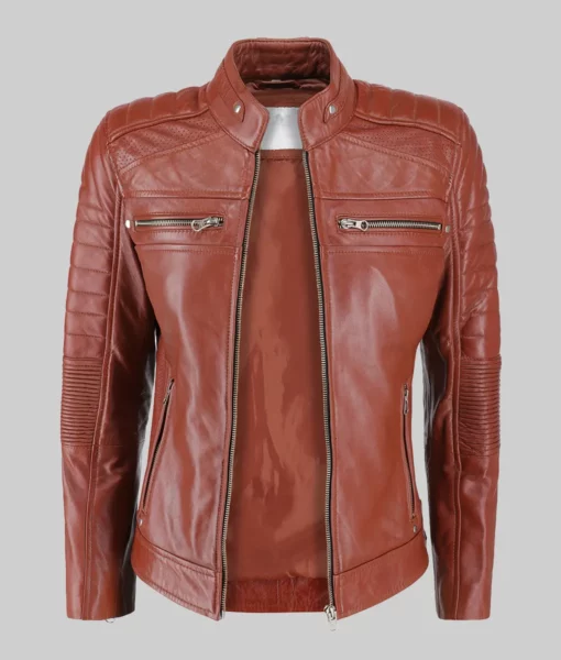 Shop The Women’s Classic Brown Cafe Racer Leather Jacket