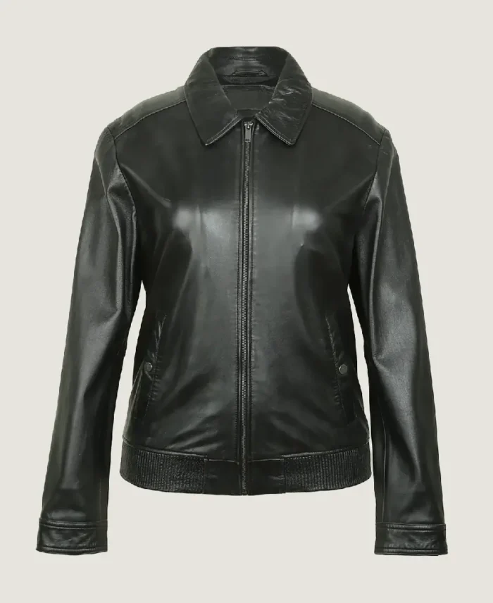 Women’s Classic Shirt Style Black Leather Jacket