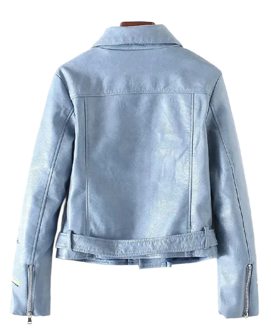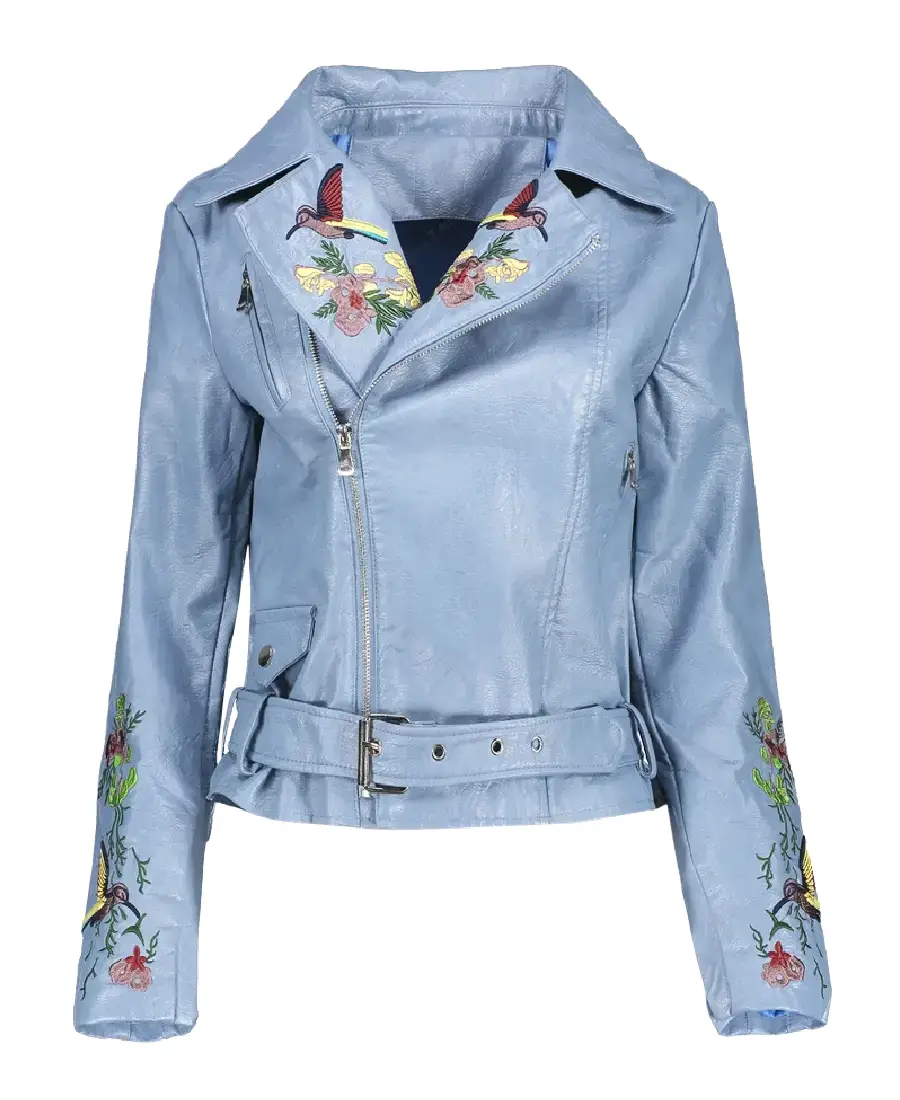 Women’s Embroidered Lapel Collar Leather Jacket
