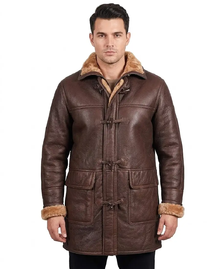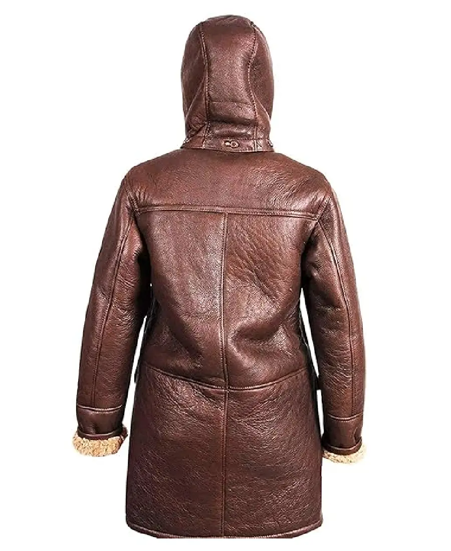 The Women’s Facon Sheepskin Duffle Coat is made from high quality sheepskin leather in a rich brown color that gives it a strong winter look. It features a non-adjustable hood that adds extra coverage during cold weather. The coat includes a classic toggle front closure that brings the traditional duffle coat style. Full length sleeves are finished with open hem cuffs for a relaxed fit. The inside comes with warm shearling lining that provides excellent comfort in colder conditions. Designed with two flap pockets on the outside and one inner pocket, this coat offers space for carrying small essentials while keeping a stylish cold-weather outfit.