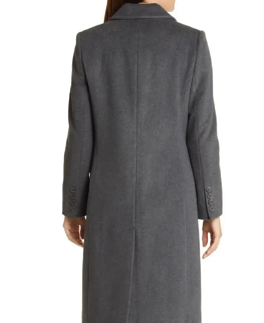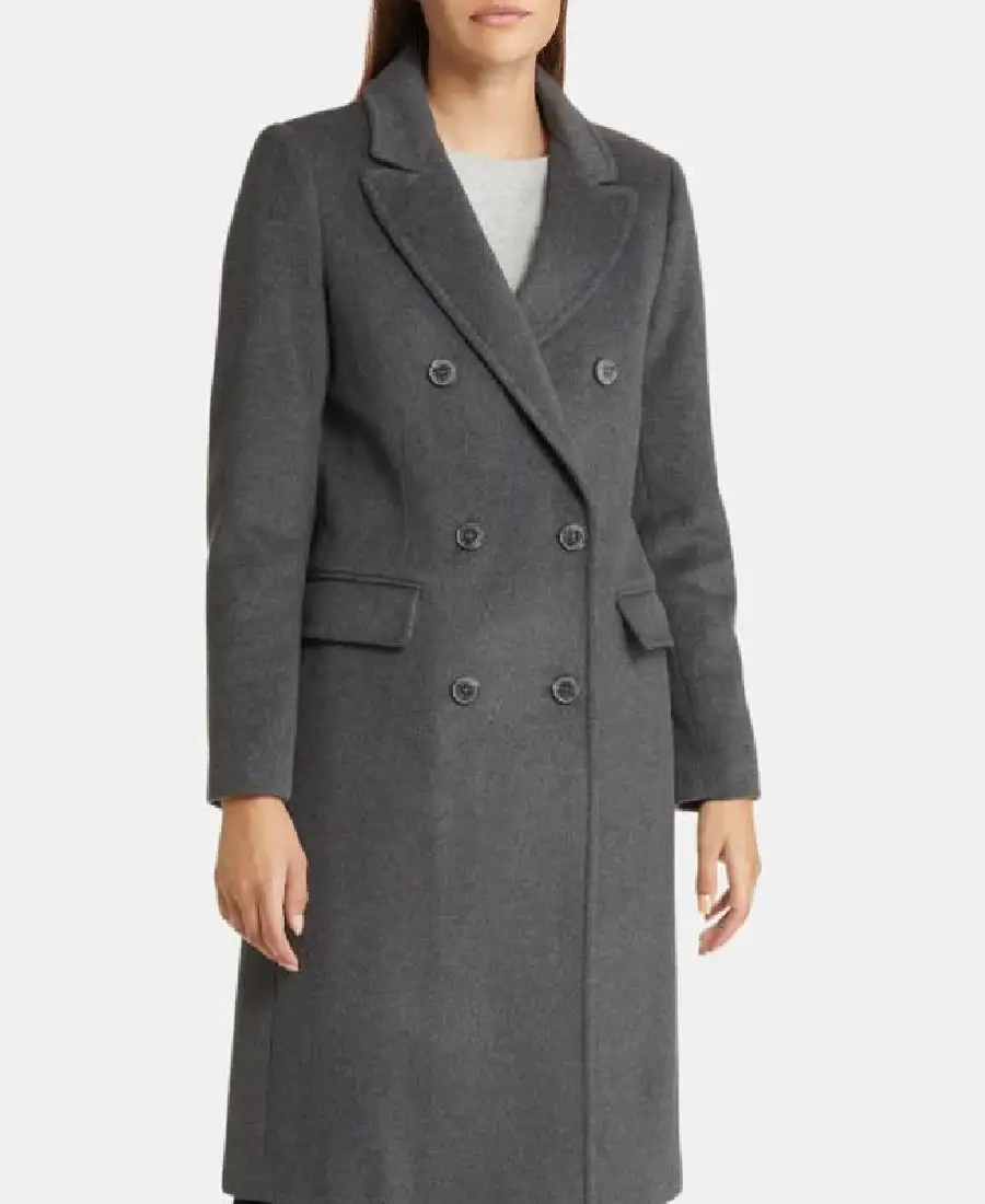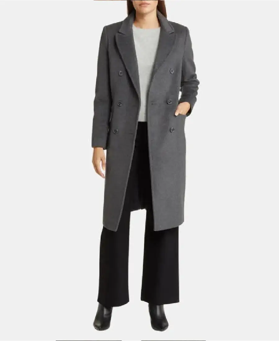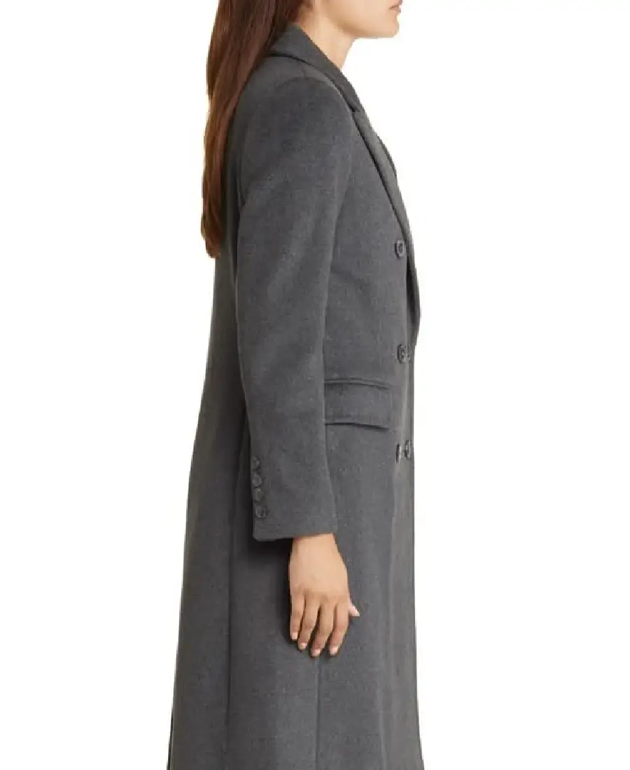 Womens Grey Double Breasted Wool Long Coat