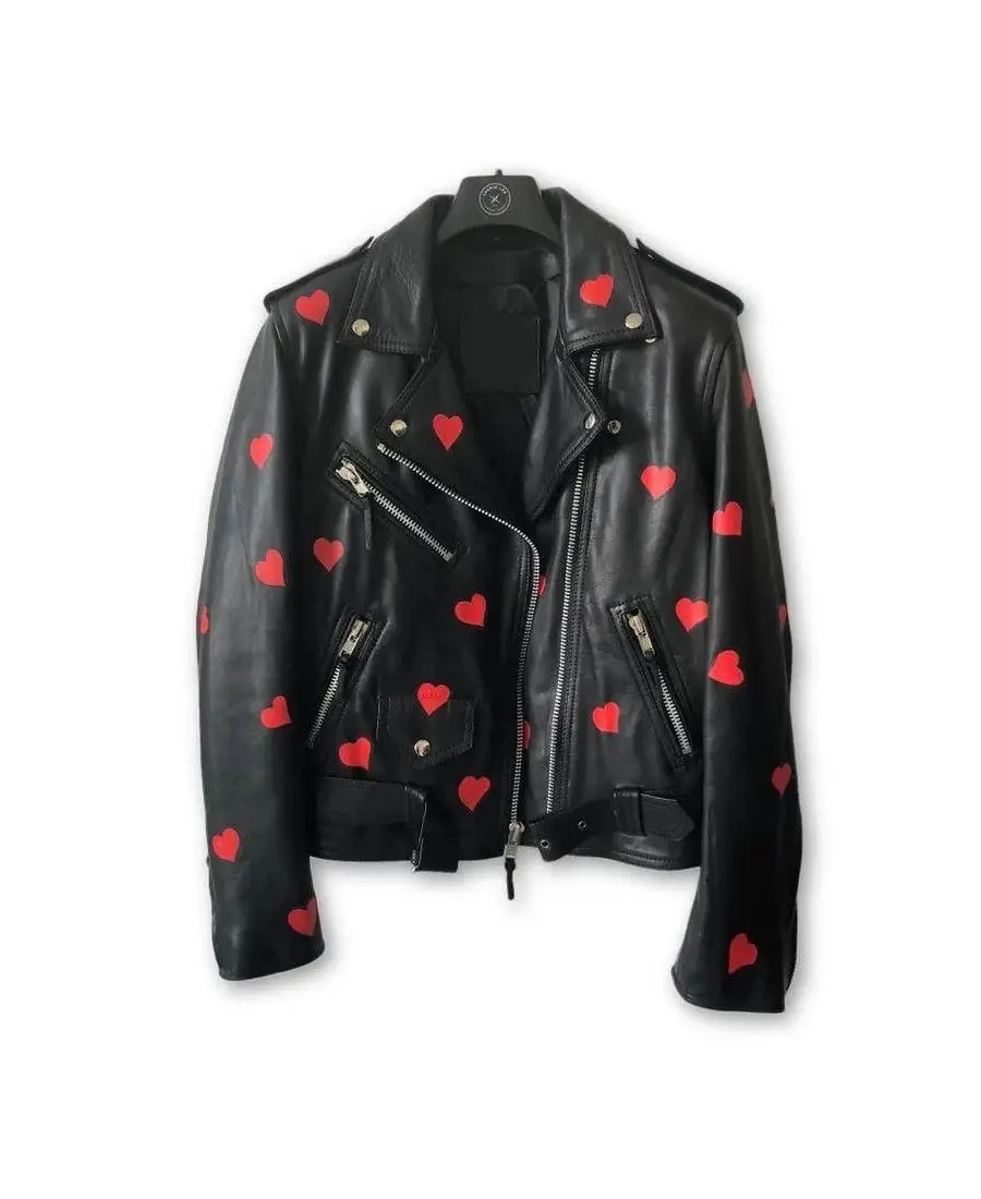 Shop The Women’s Heart Design Lapel Style Leather Jacket